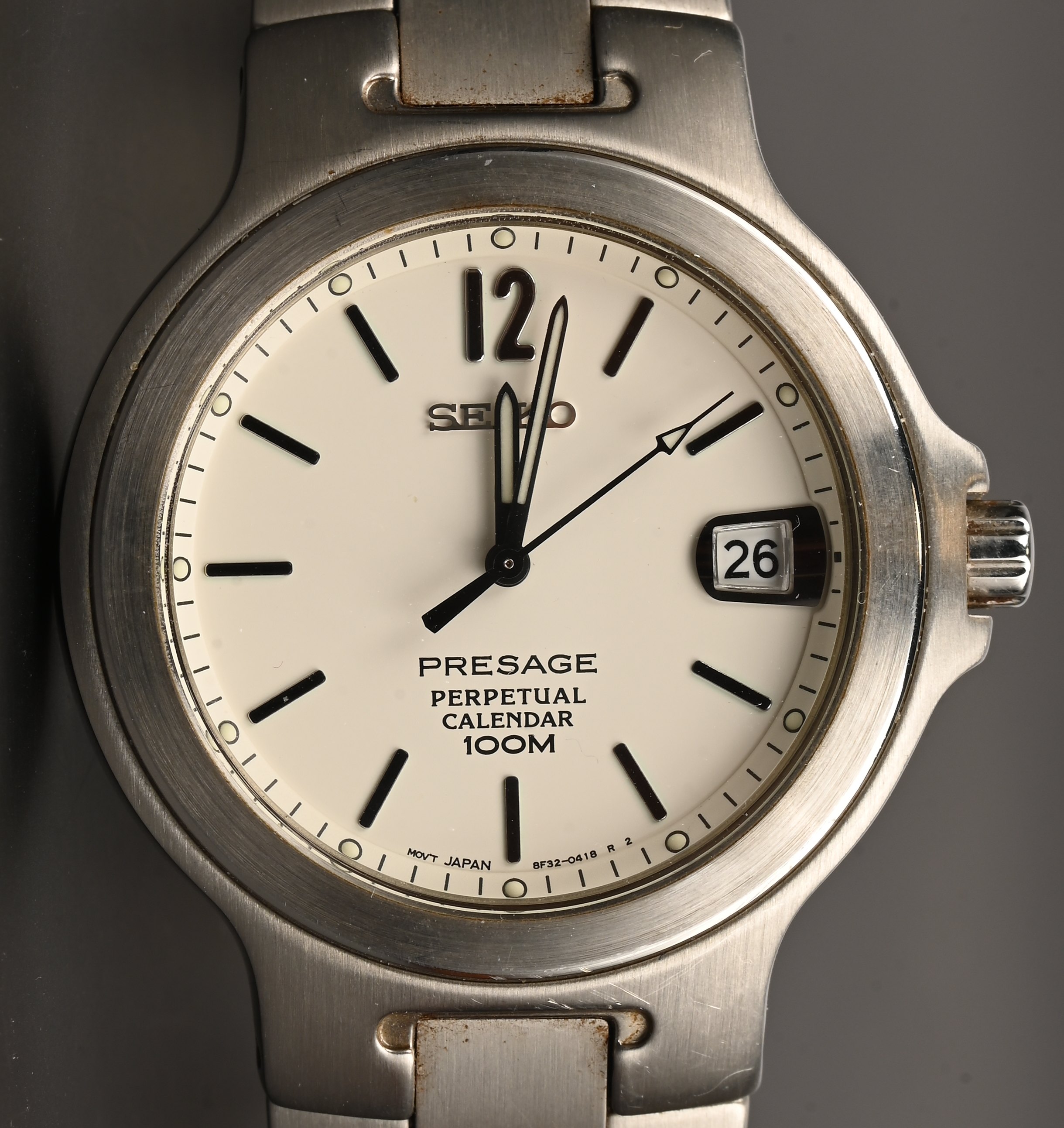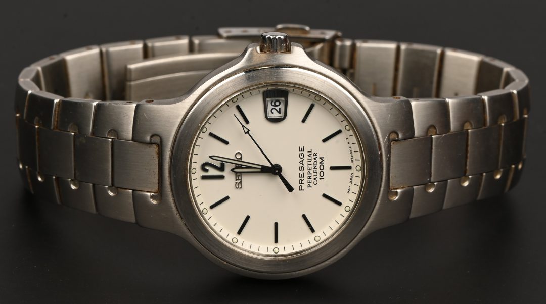 Een roestvrij stalen Seiko, Presage Perpetual, Calendar 100m.