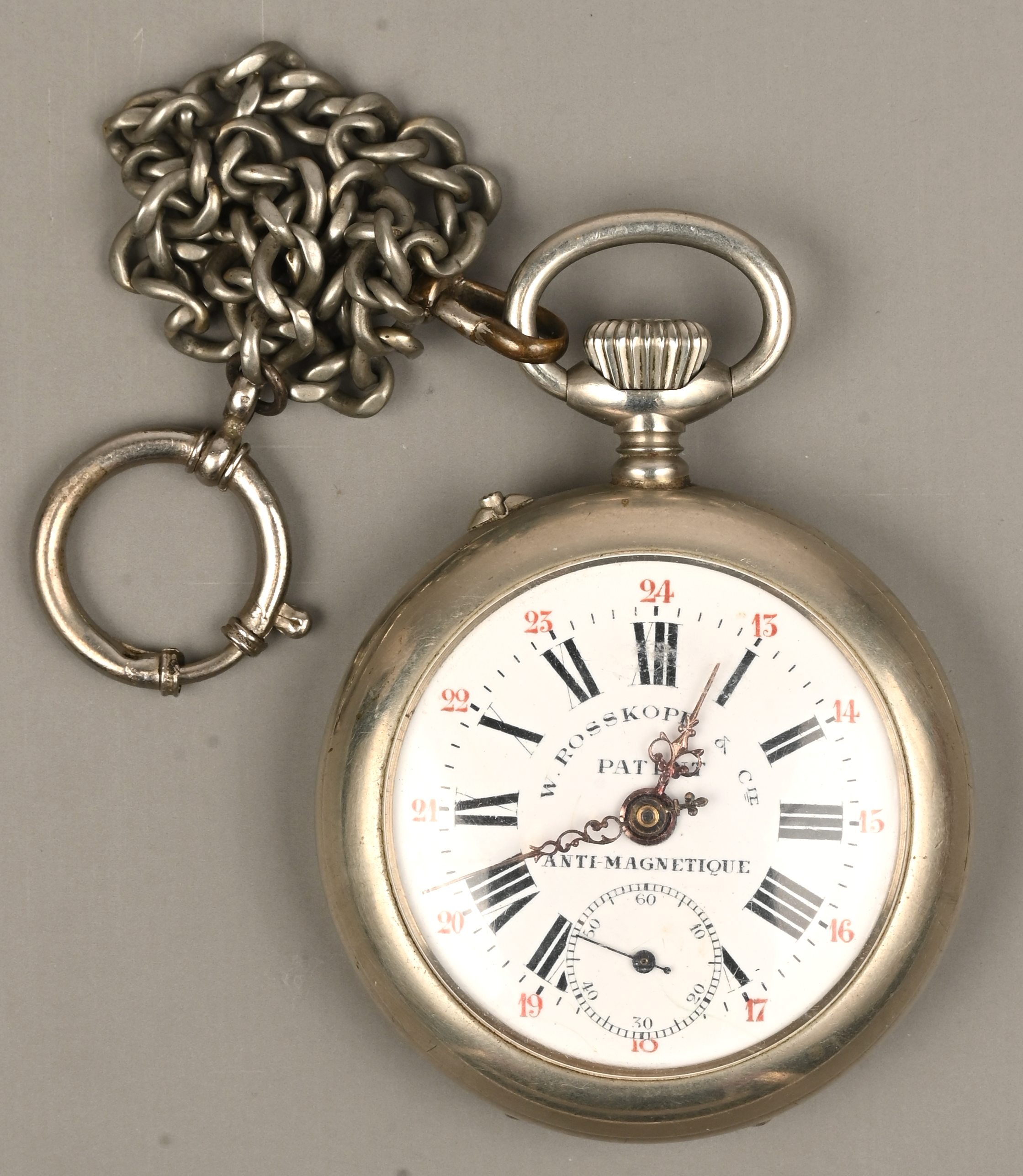 Een roestvrijstalen zakhorloge. Werkt.