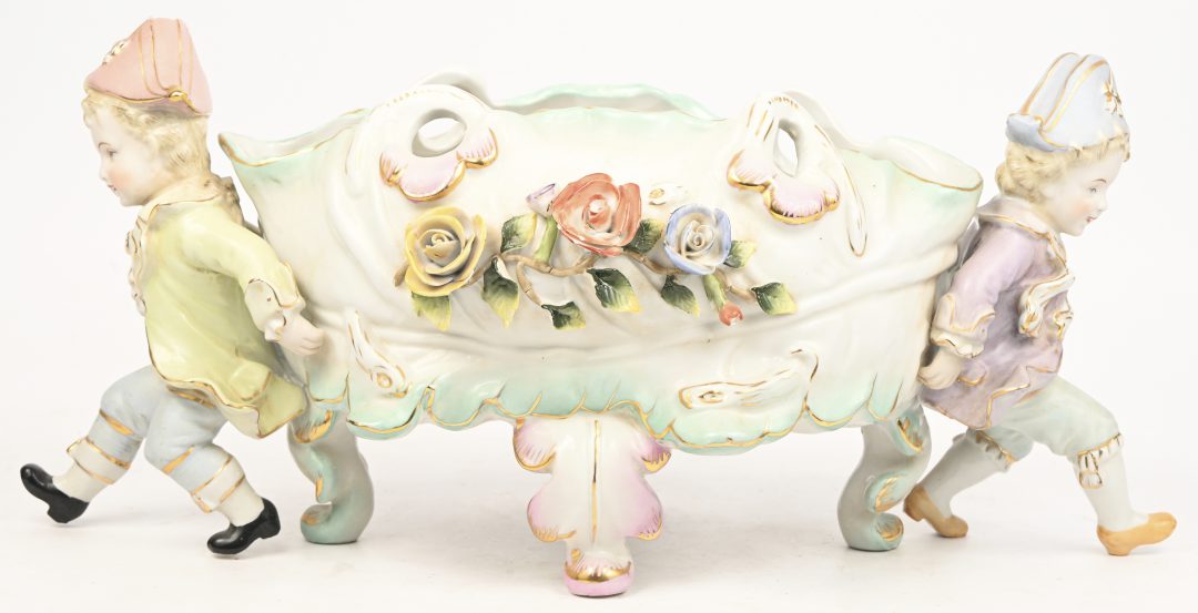 'Infatuated wandering couple', and Capo Di Monte group in biscuit. Signed; Carpie. Small damage to the leaves. -