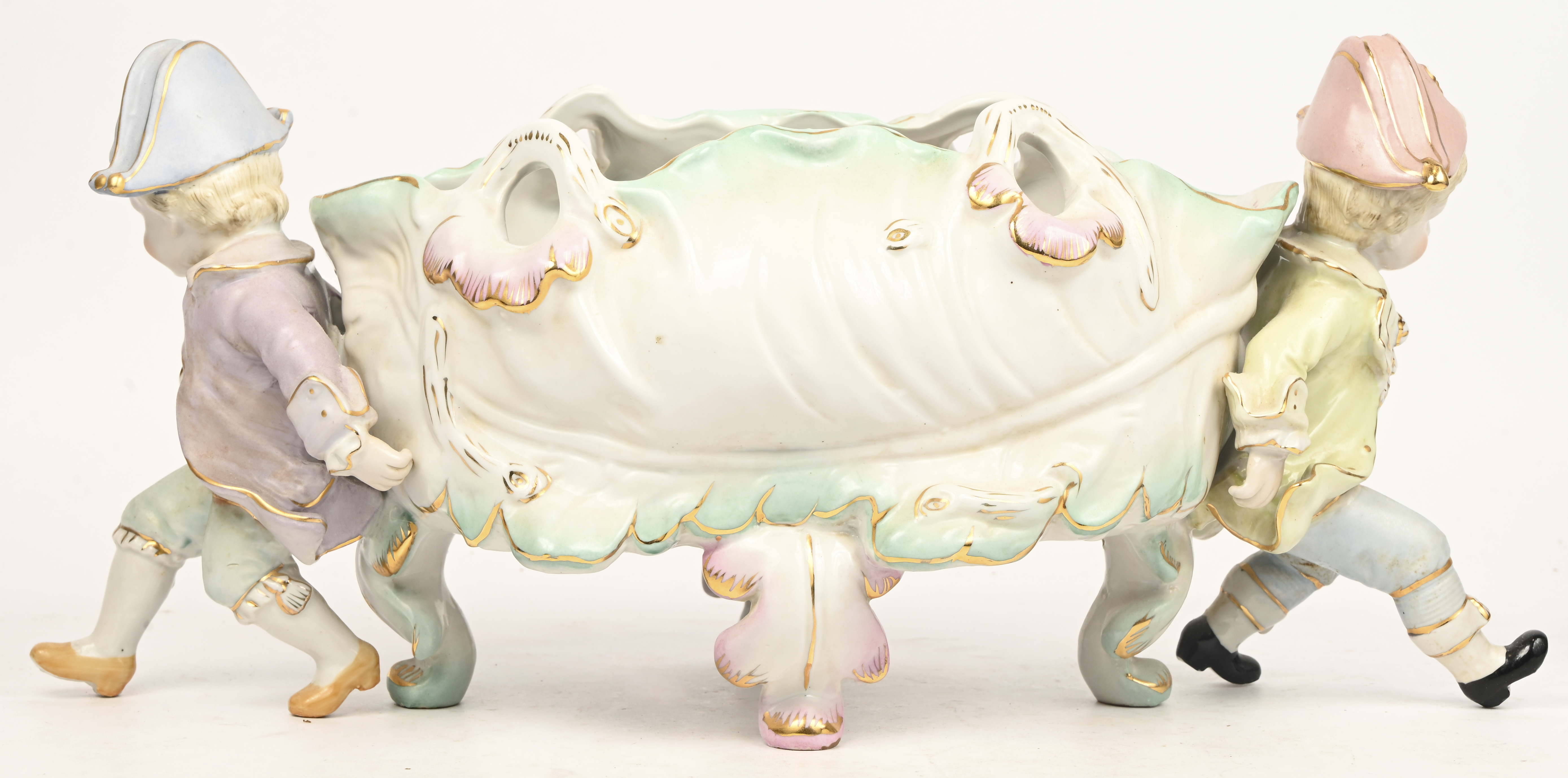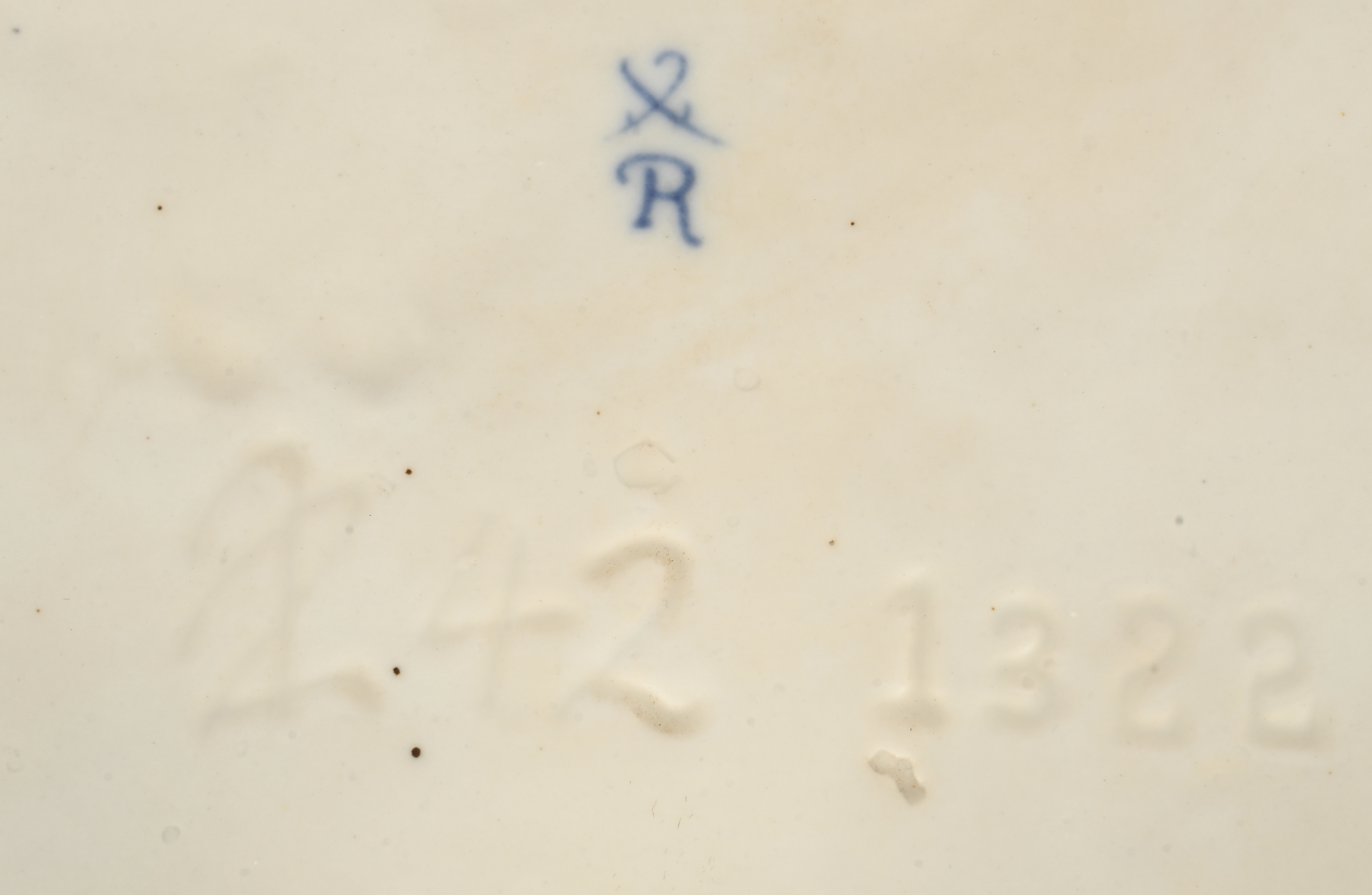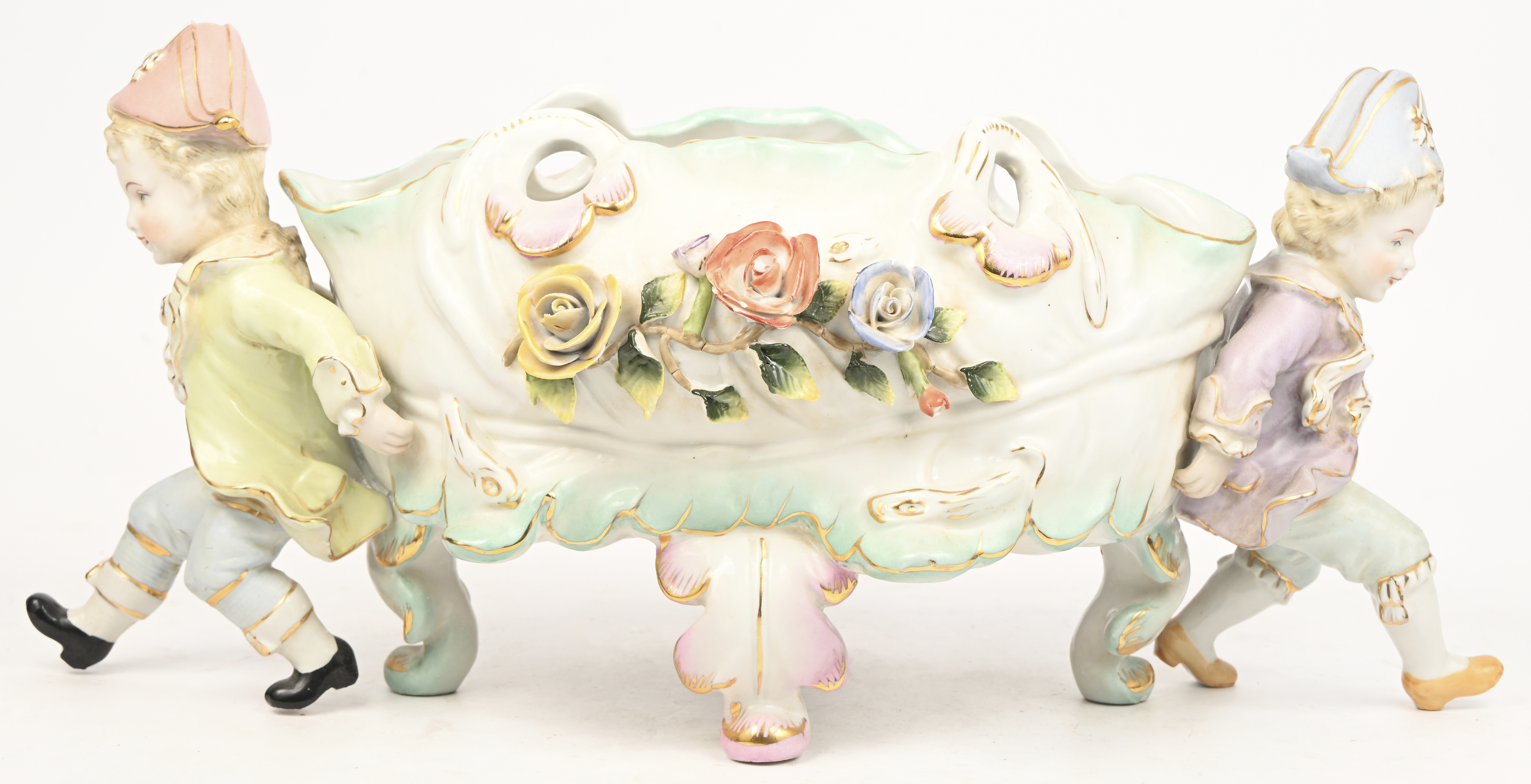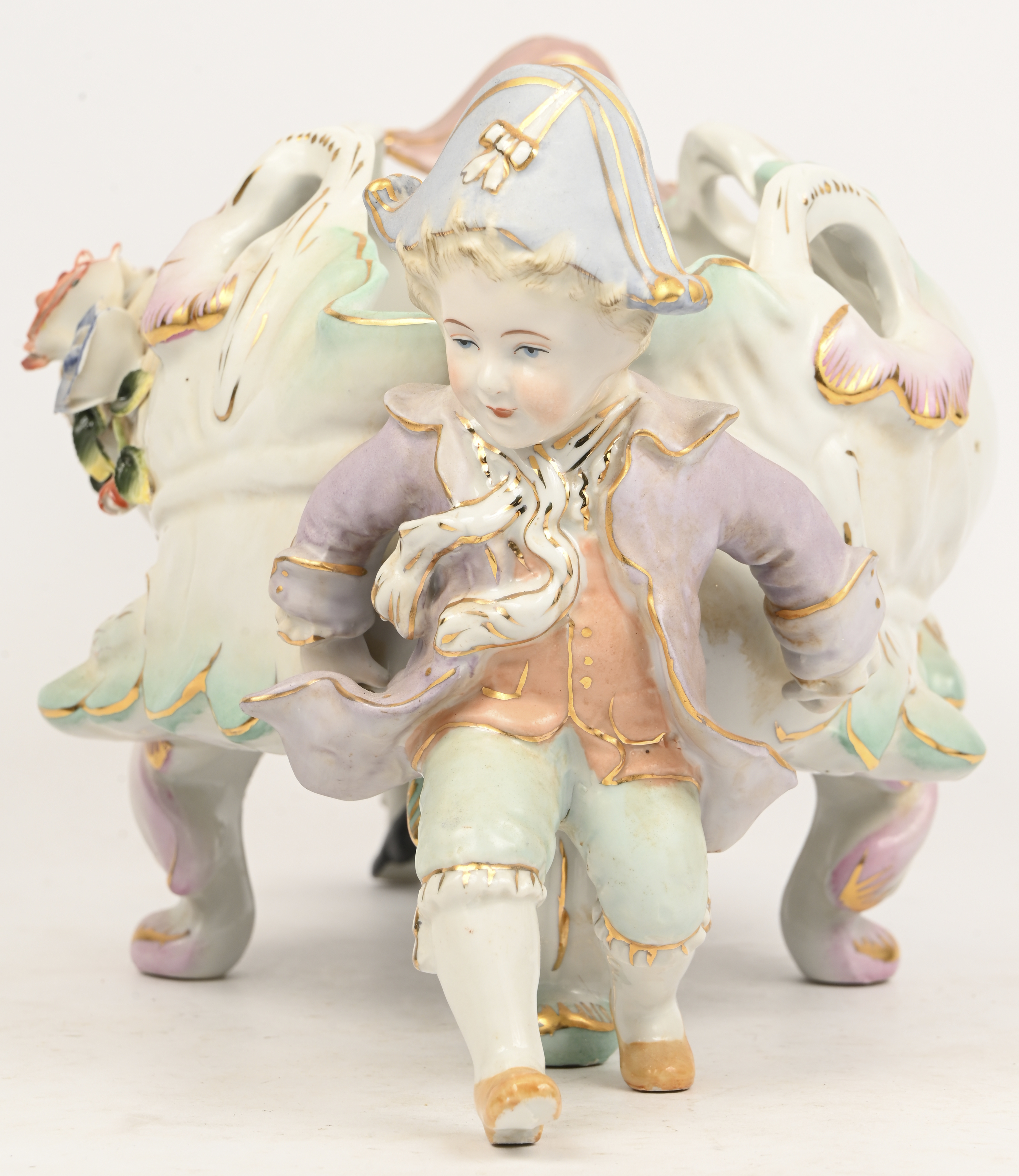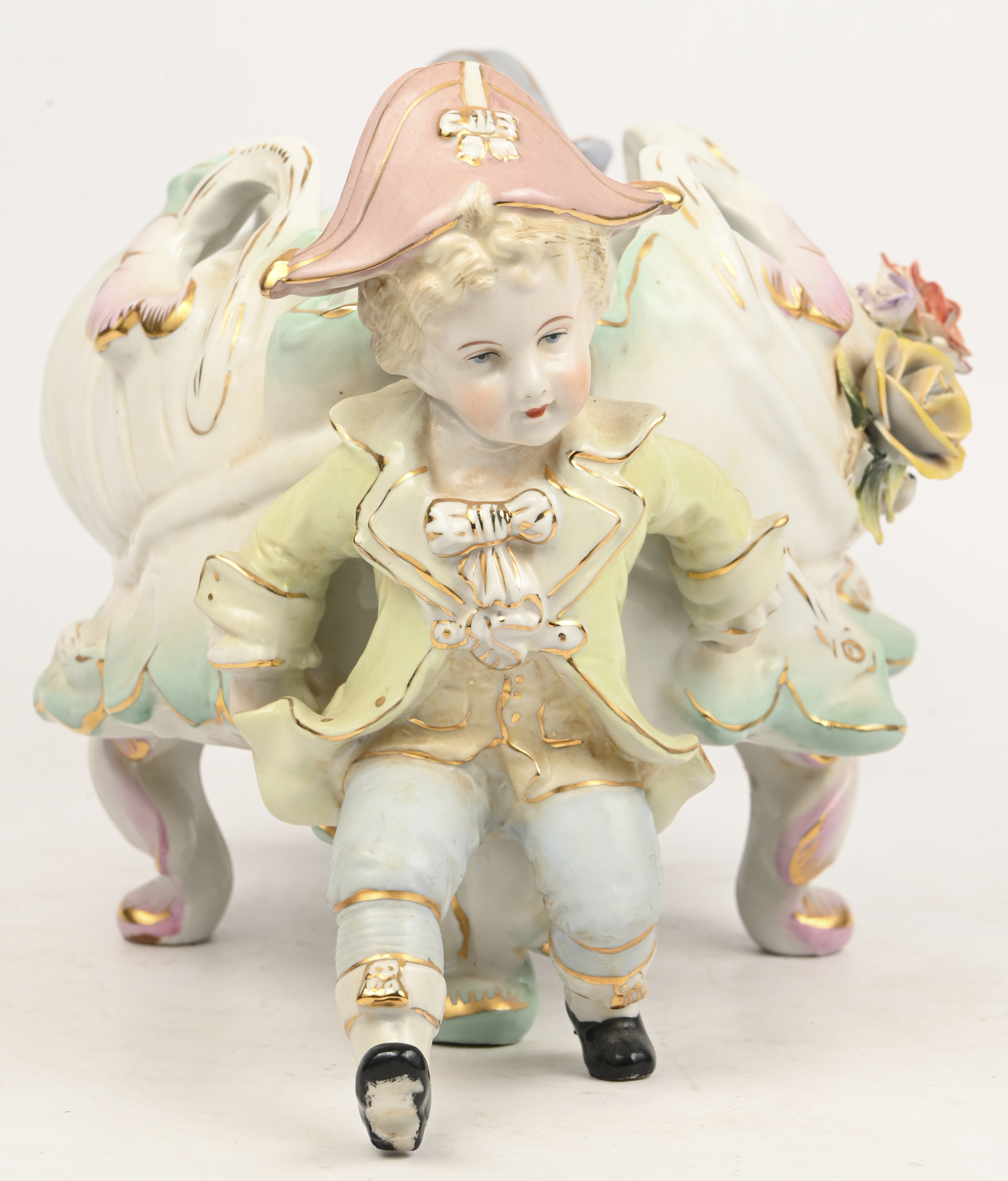 ‘Verliefd zwerverskoppel’, en Capodimonte groep van biscuit. Getekend Carpie. Klein beetje schade aan de blaadjes.