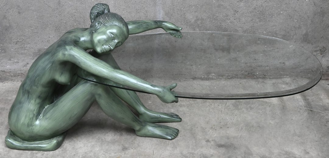 #63“De turnster”. Een beeld van gepatineerd brons op een zwart marmeren sokkel. Gesigneerd ‘Milo’.