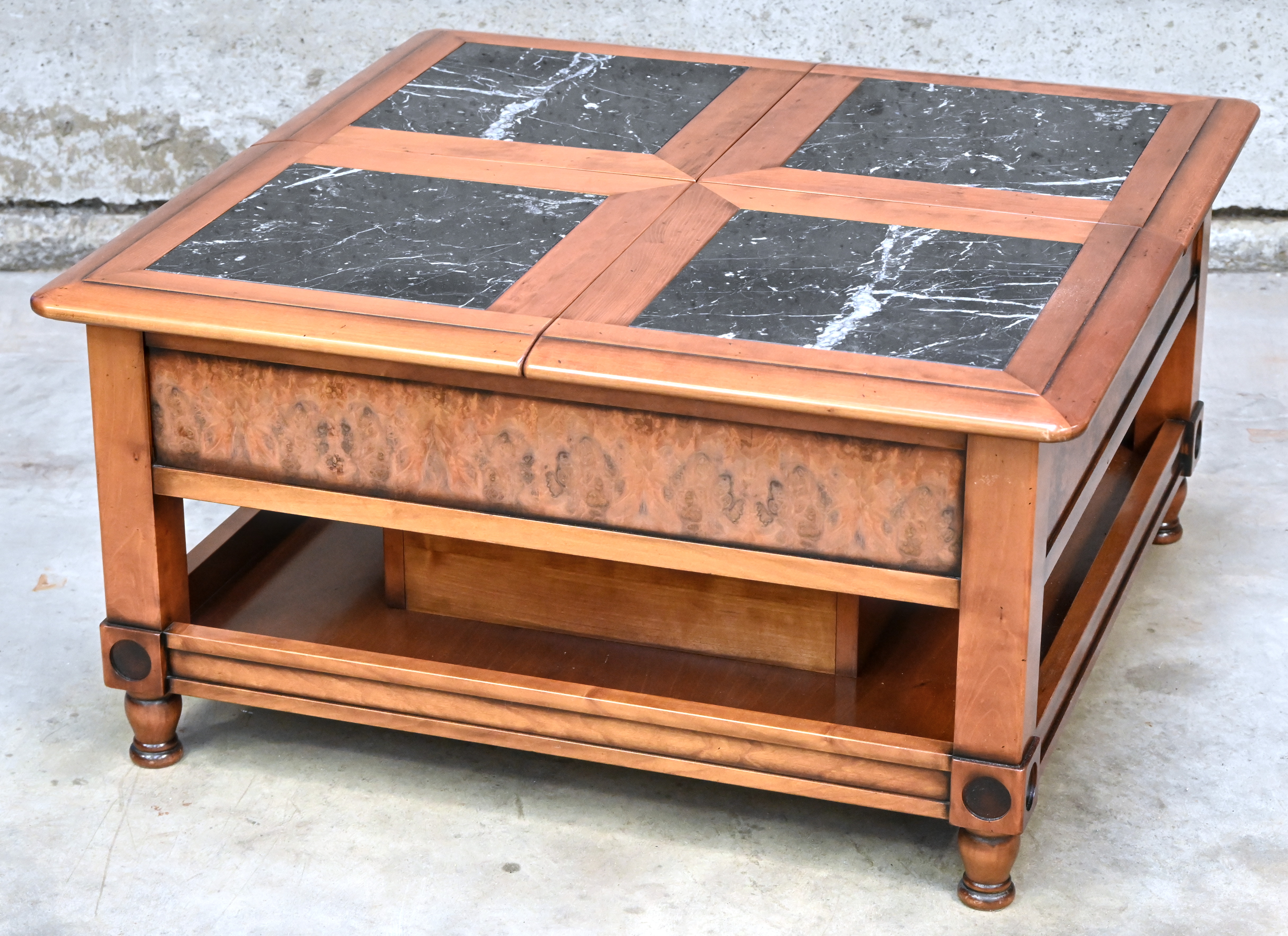 #326Een antieke scribaan op onderstel. Binenin 5 schuifjes.