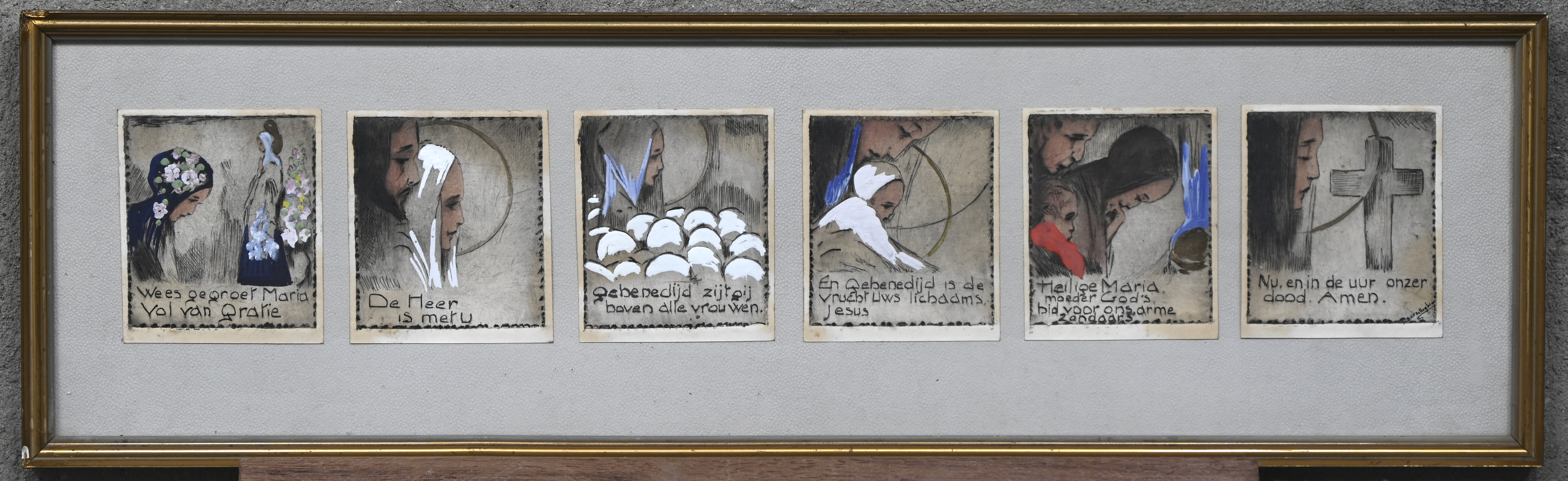 Een set van twee etsen in sepia tinten, met religieus thema. Niet getekend.