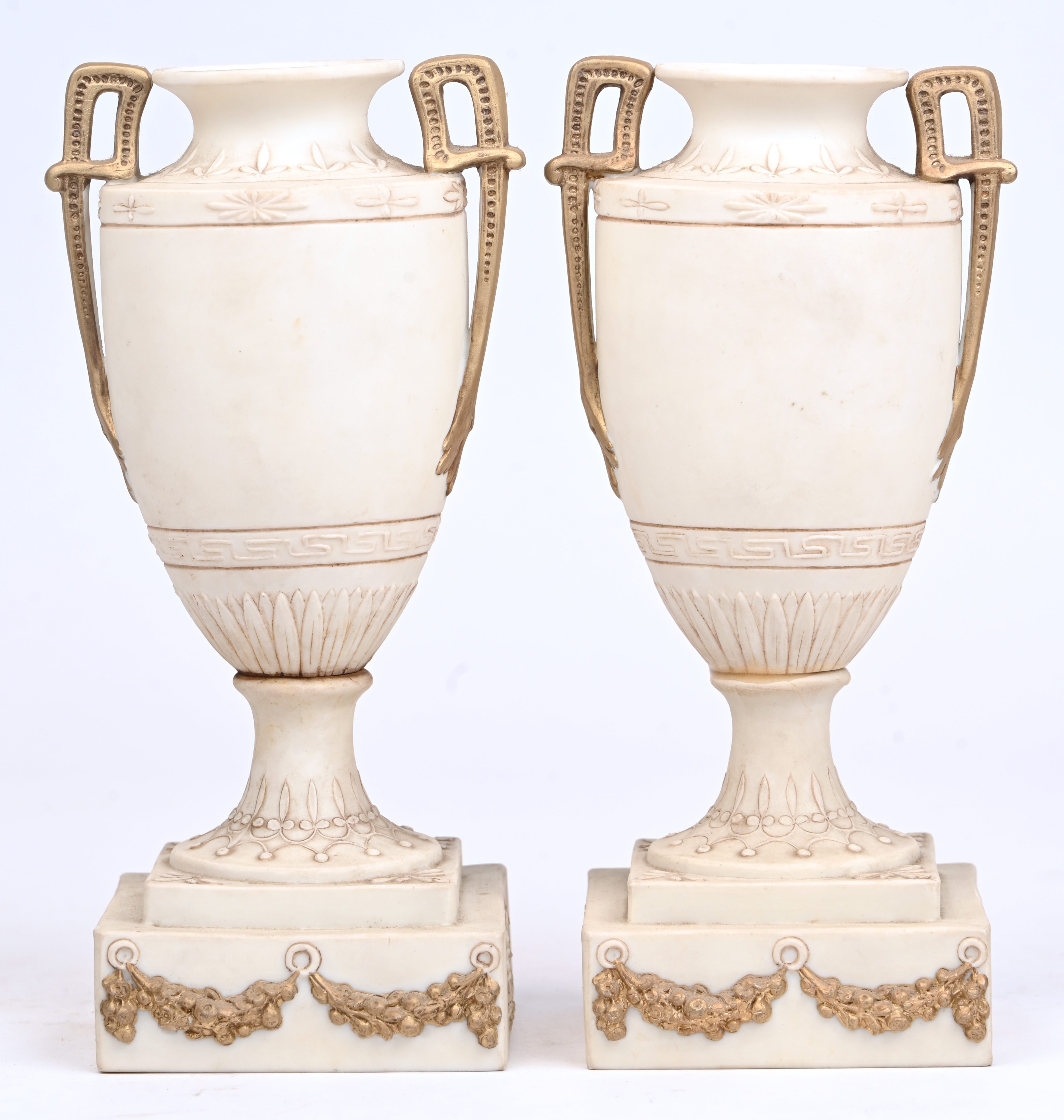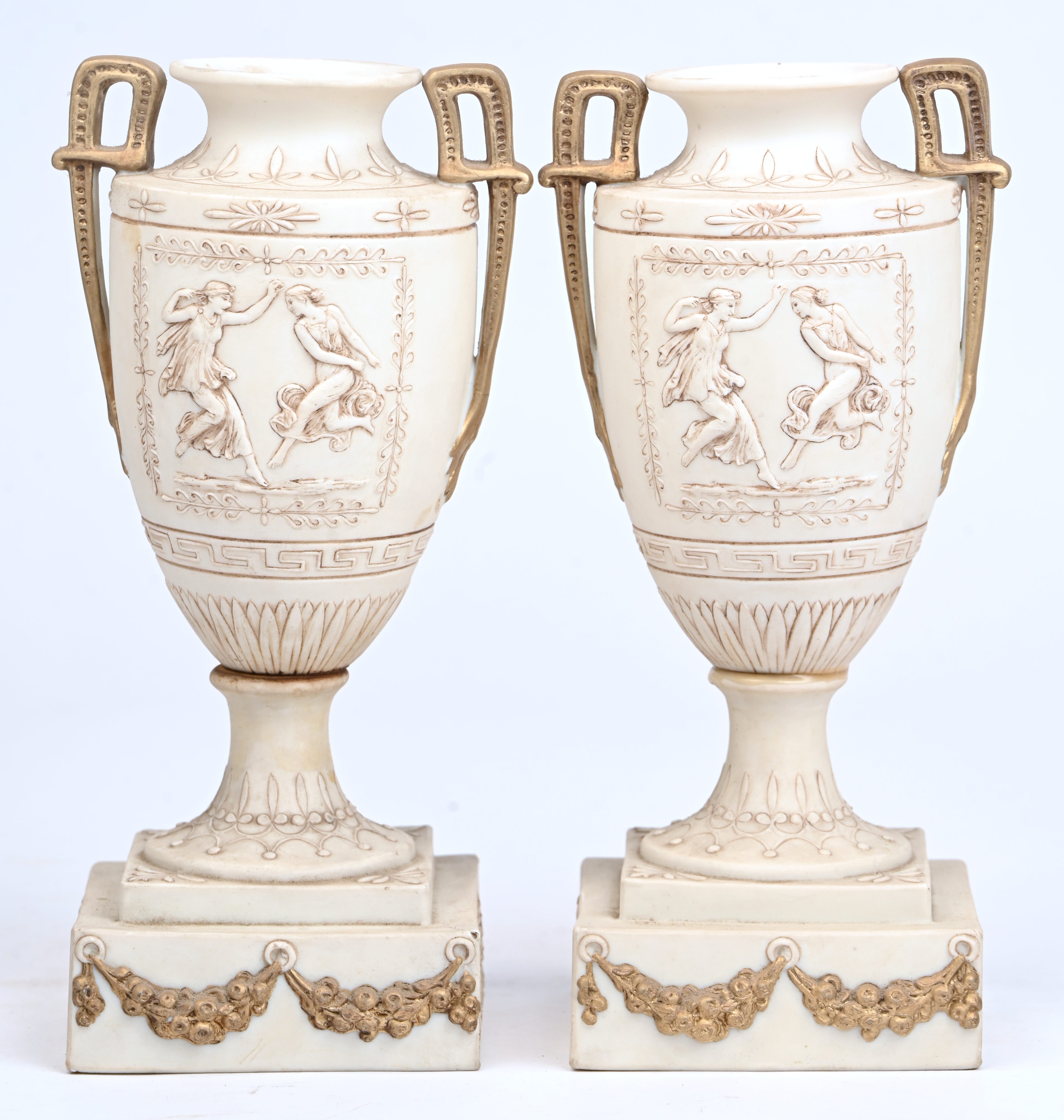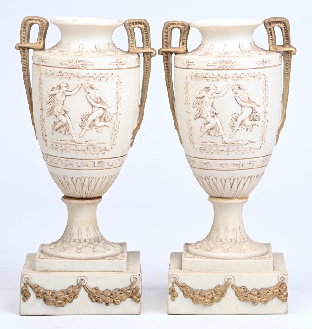 Een set biscuit urnevaasjes naar Romeins voorbeeld.