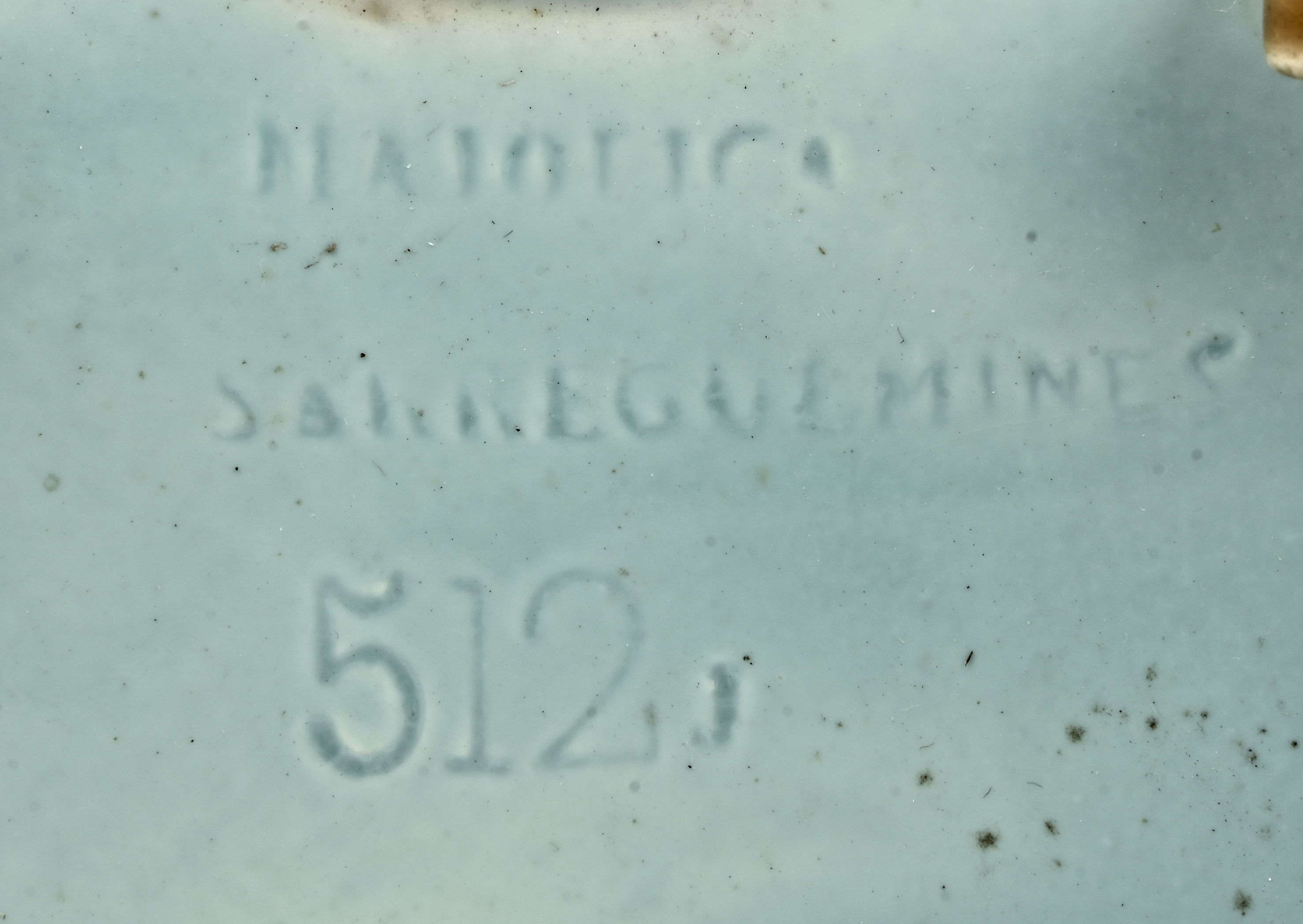 A blue porcelain, vintage Italian table lamp with a glass shade. Decorated with plant motifs and marked at the base. -