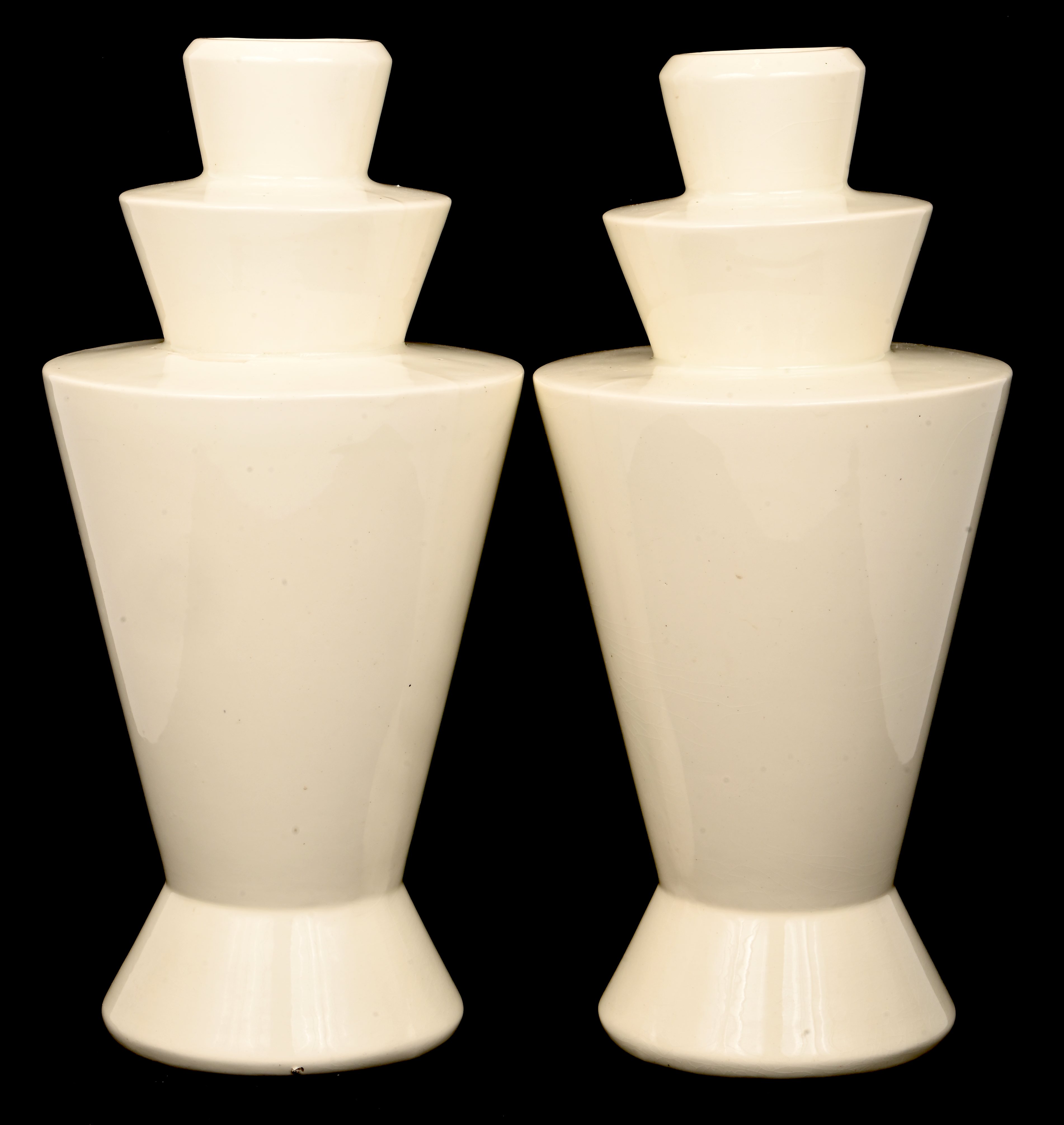 Twee monochrome art-deco vazen, Charles Catteau, model F1148, gemerkt ‘made in Belgium’, genummerd, en model F1200, gemerkt Boch Frères La Louviére, genummerd.