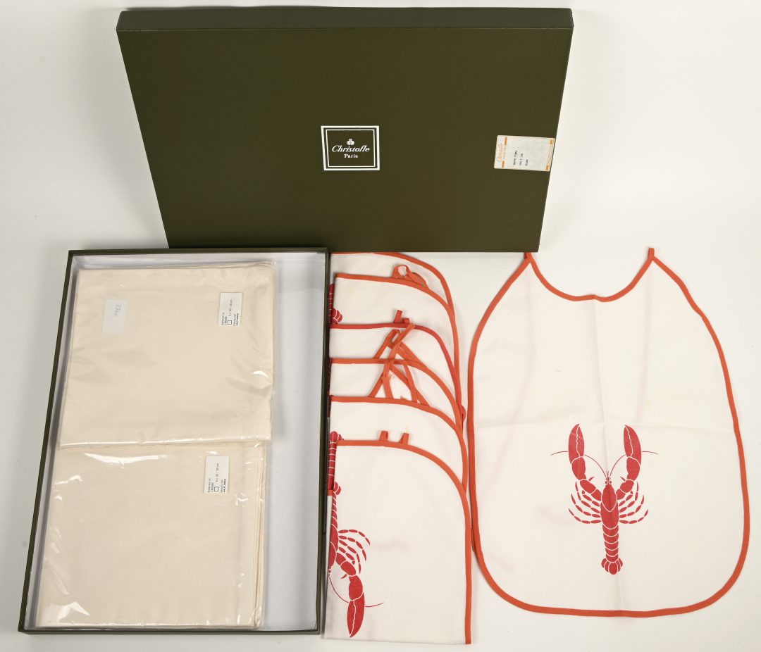Een set servetten in doos, gemerkt “Christofle”.
