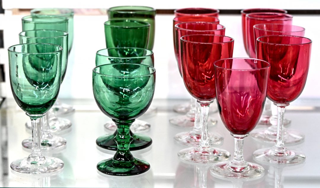 A lot of 15 glasses, Booms glass, 5 x 11 cm, 5 x 9 cm, and 5 x 6 cm tall. -