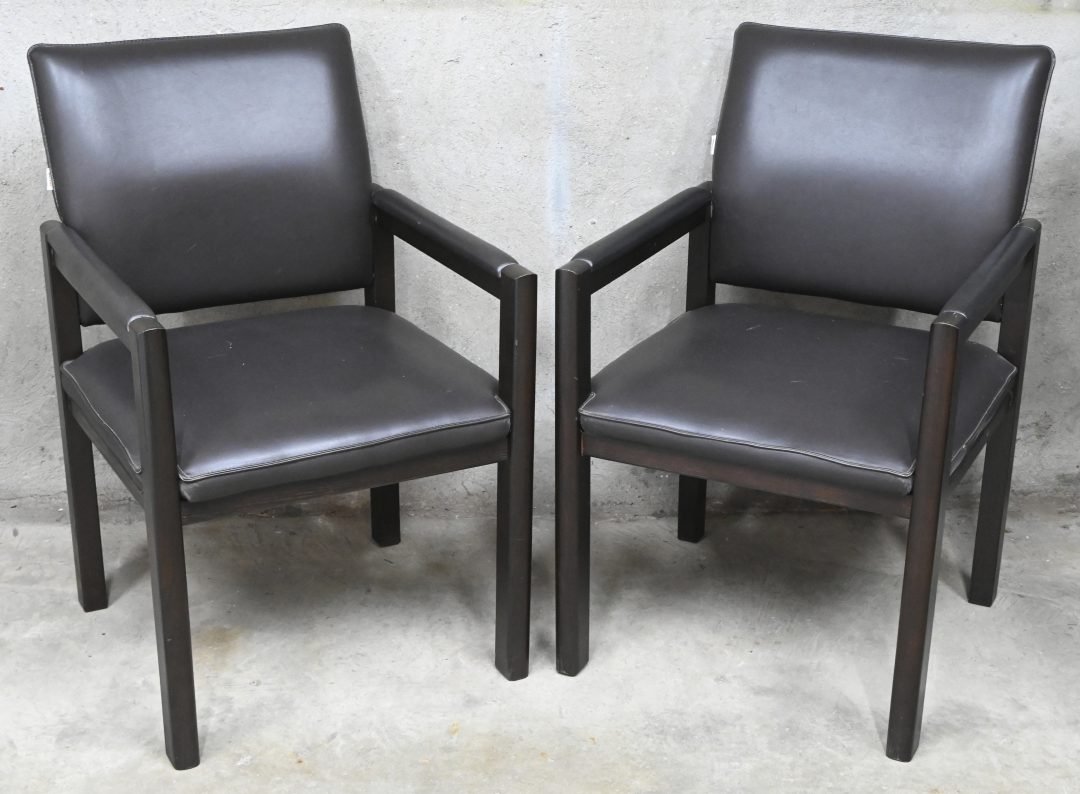 A set of 6 solid oak chairs, 2 with armrests, in brutalist style. -