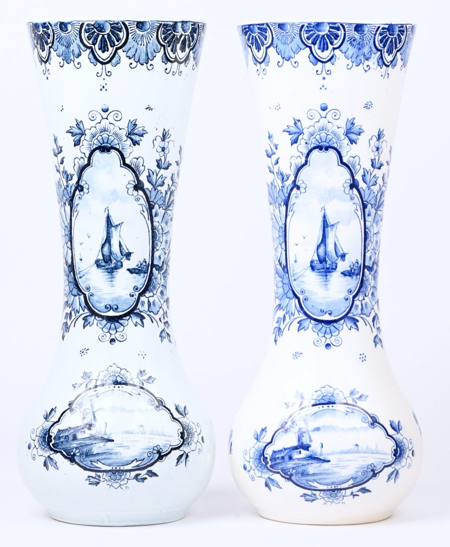 Een set van 2 Delfts blauwe vazen waarvan één met haarlijn.