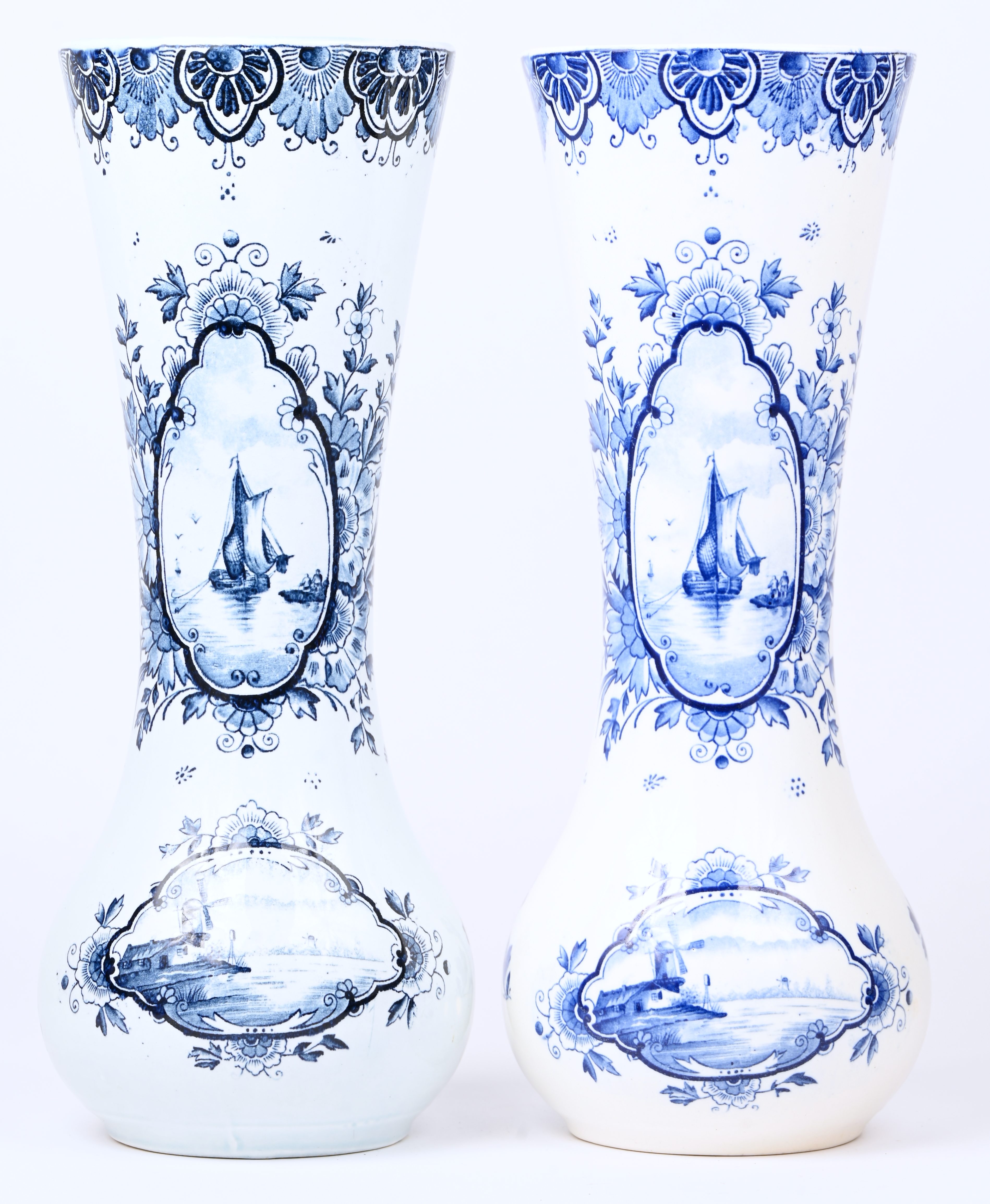A set of 2 Delft blue vases, one with a hairline crack.