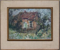 #234‘Bouwvallig schuurtje’, een studie in olieverf op paneel. Onleesbaar getekend.