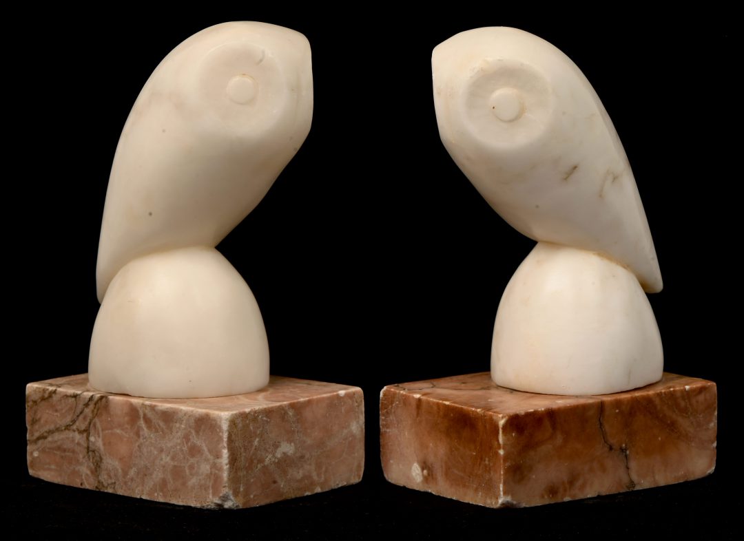 A set of 2 marble owl figurines. Italian work.
