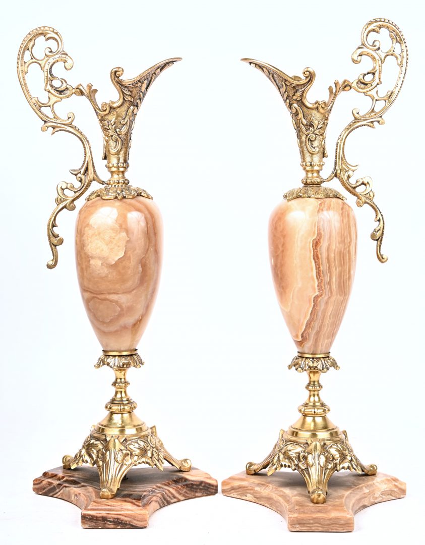A set of 2 decorative jugs, marble and brass.