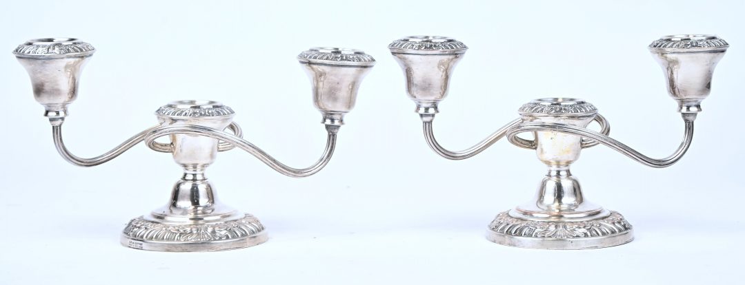 Een set van 2 verzilverd metalen kandelaars.