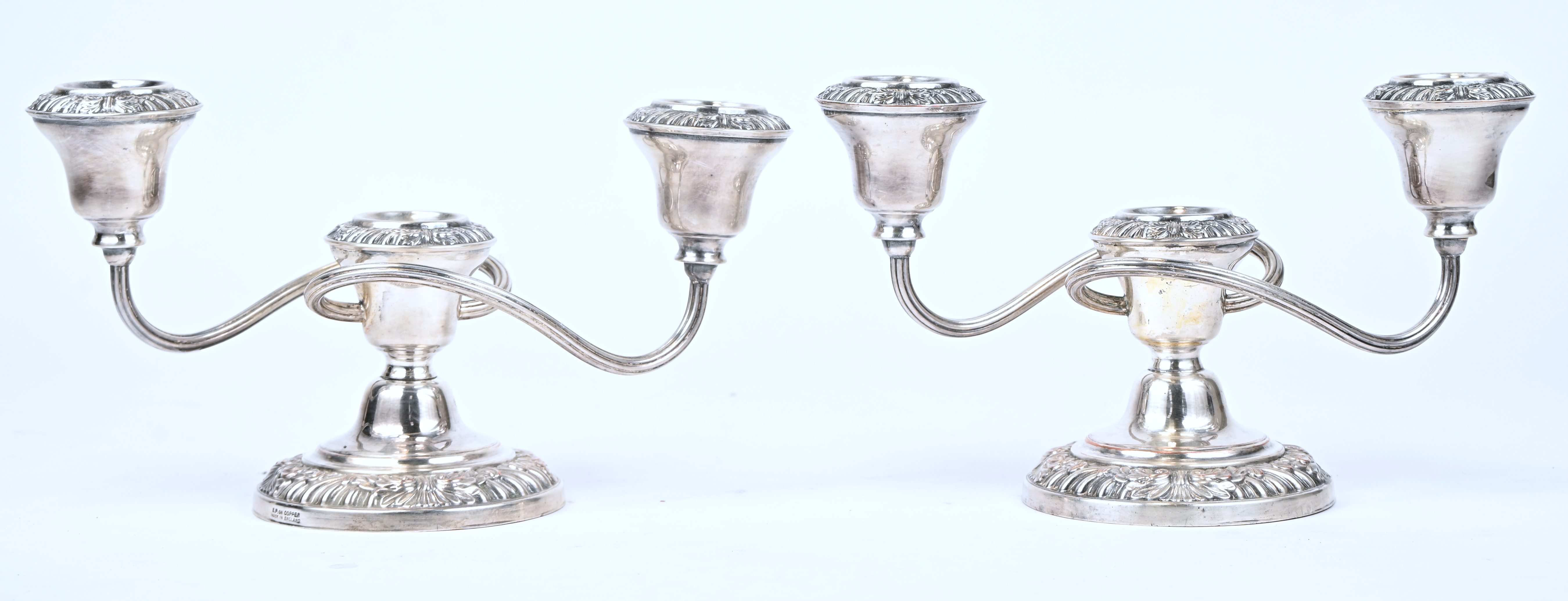 A set of 2 silver-plated metal candle holders.