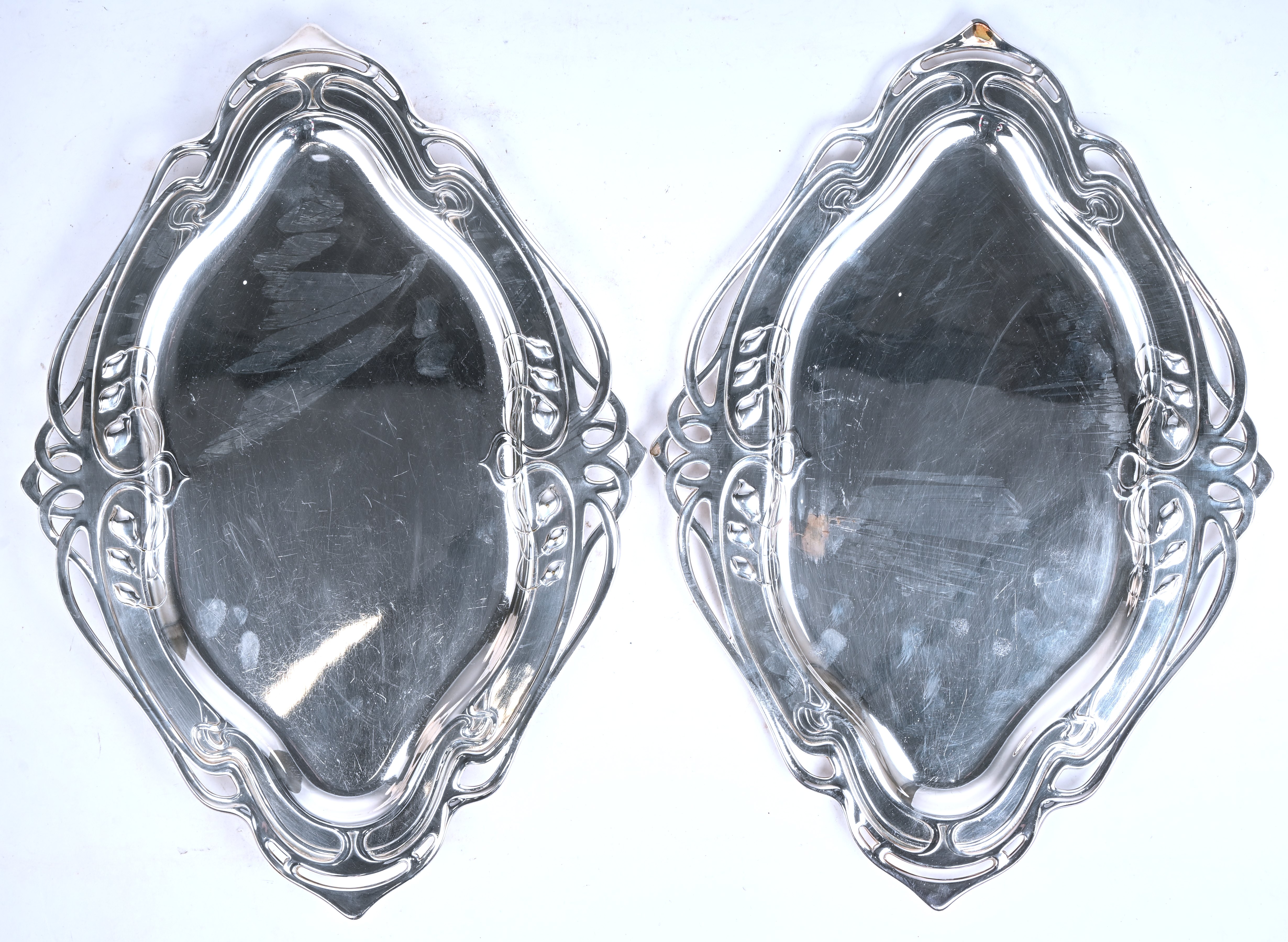 Een set van 2 verzilverd metalen schalen waarvan één op pootjes, art-nouveau, gemerkt OX WMF 1/0.AR3