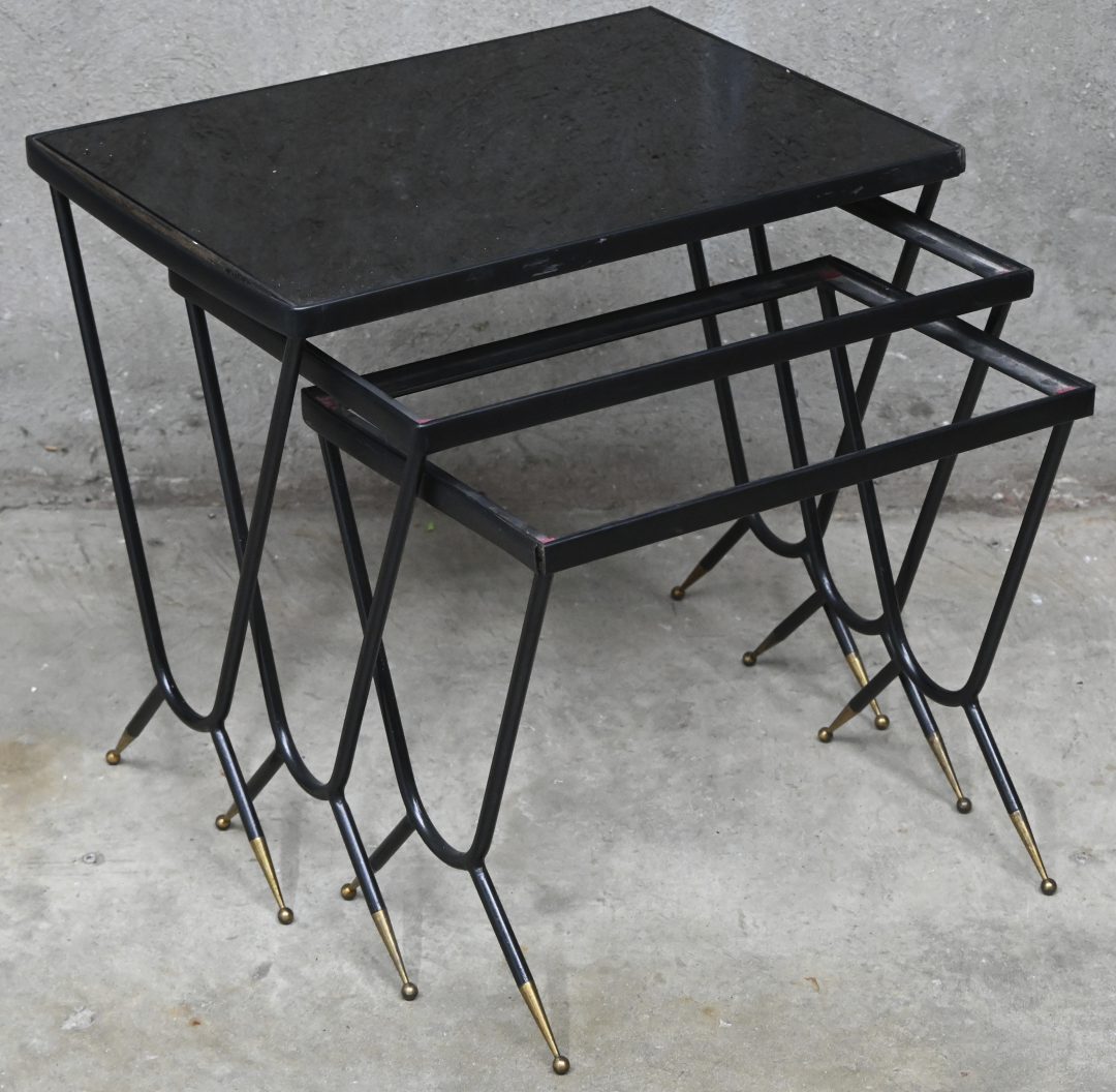#316Een bijzettafeltje, midden vorige eeuw, smeedijzer en fumé glas.