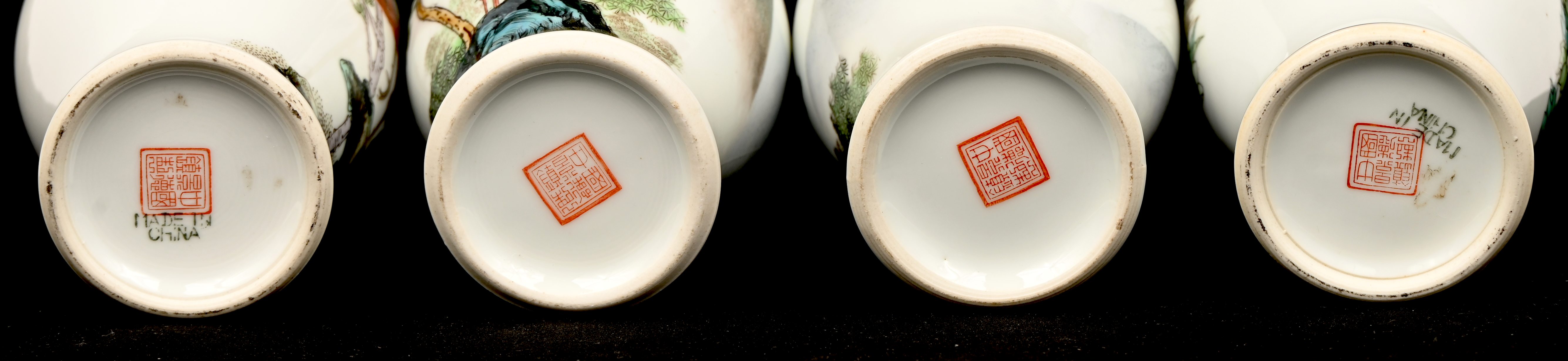 A set of 4 Chinese porcelain vases, famille rose, decorated with landscapes and birds.