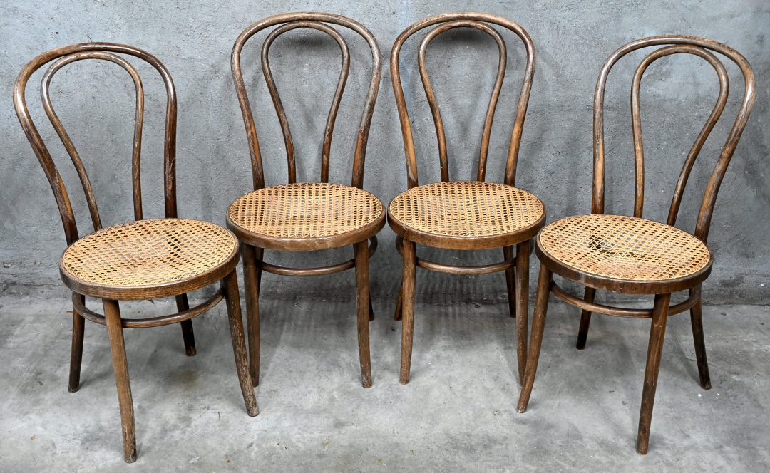 Een set van 4 stoelen naar de café stoel No 14 van Thonet, zitting opnieuw te canneren.