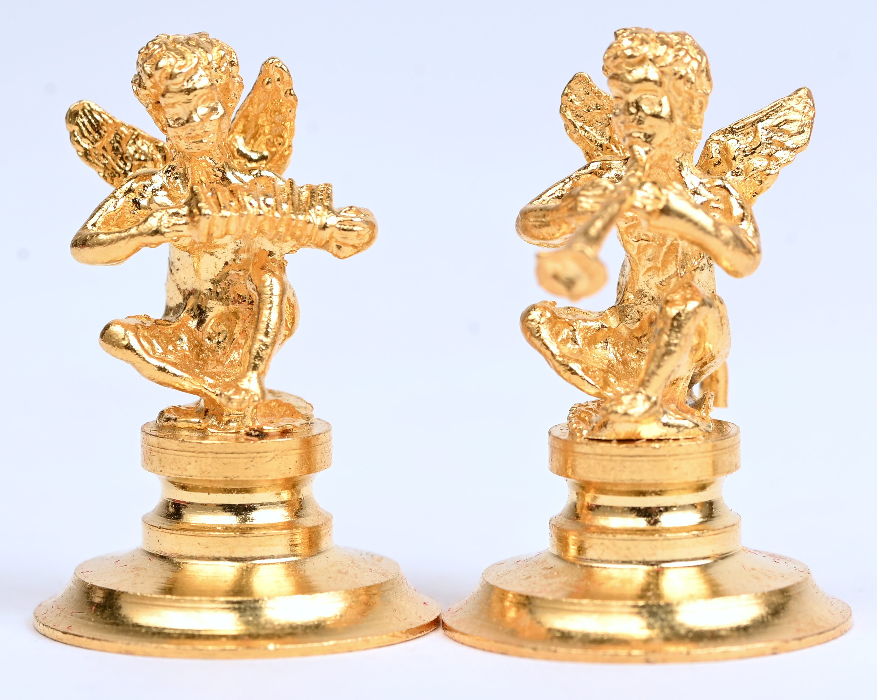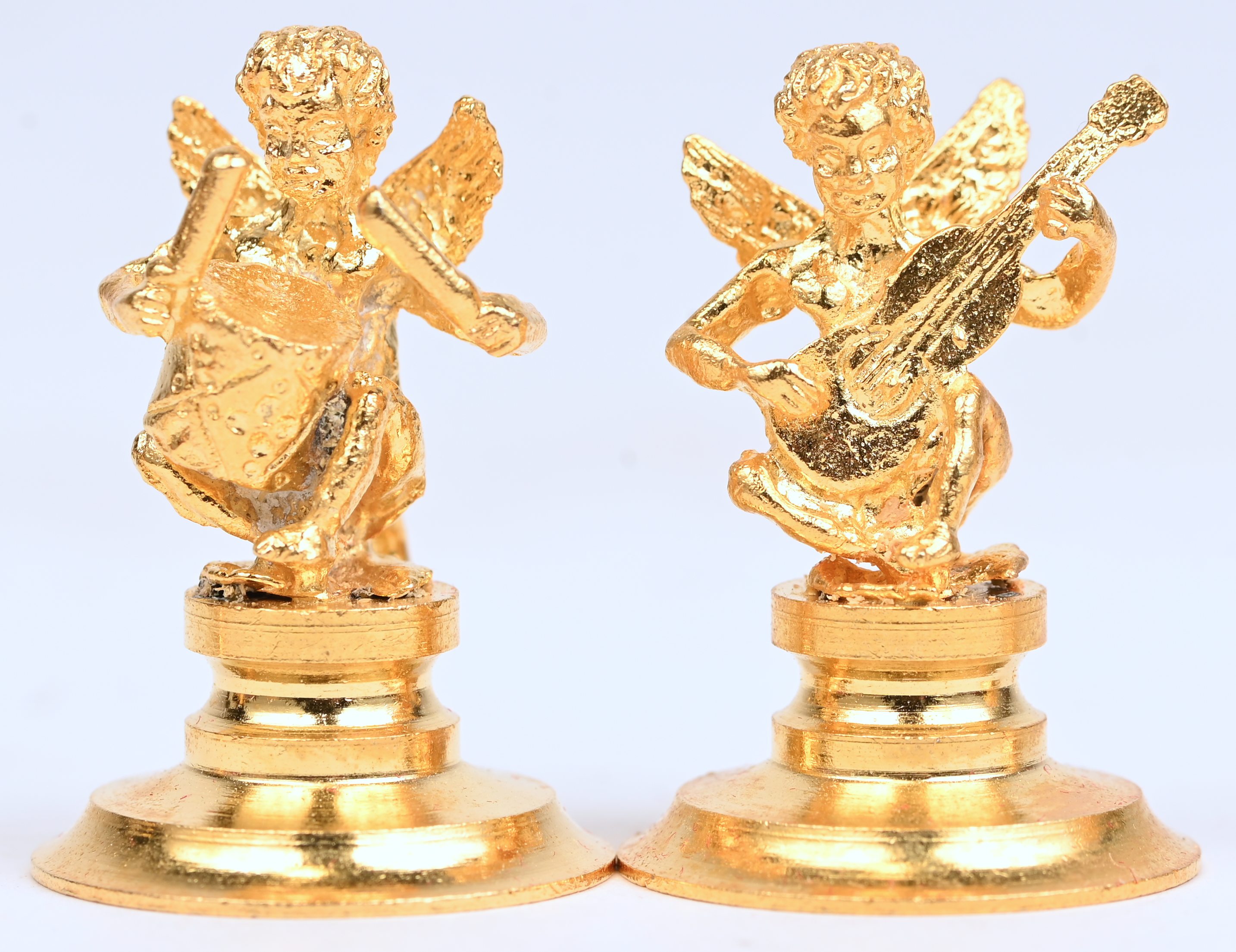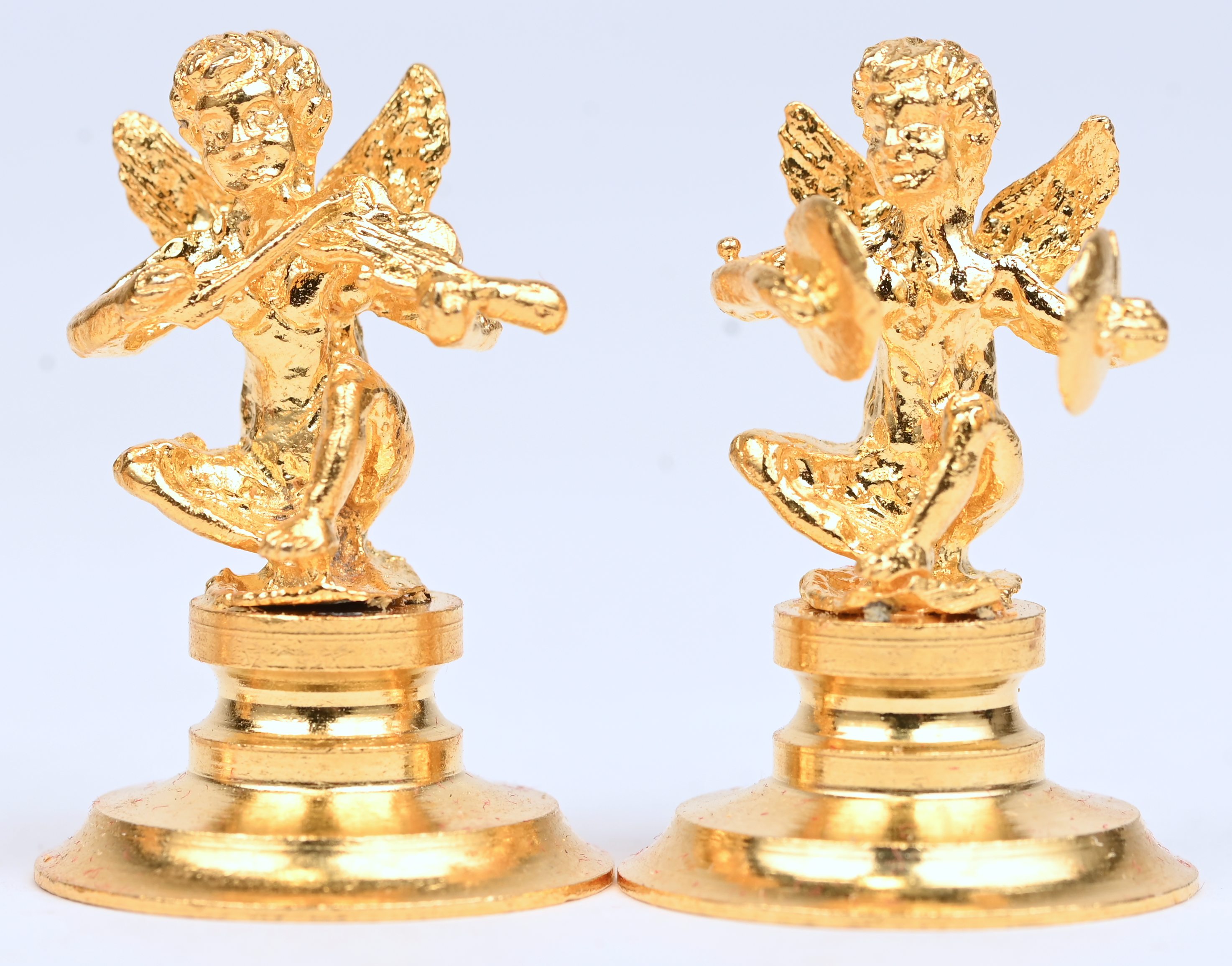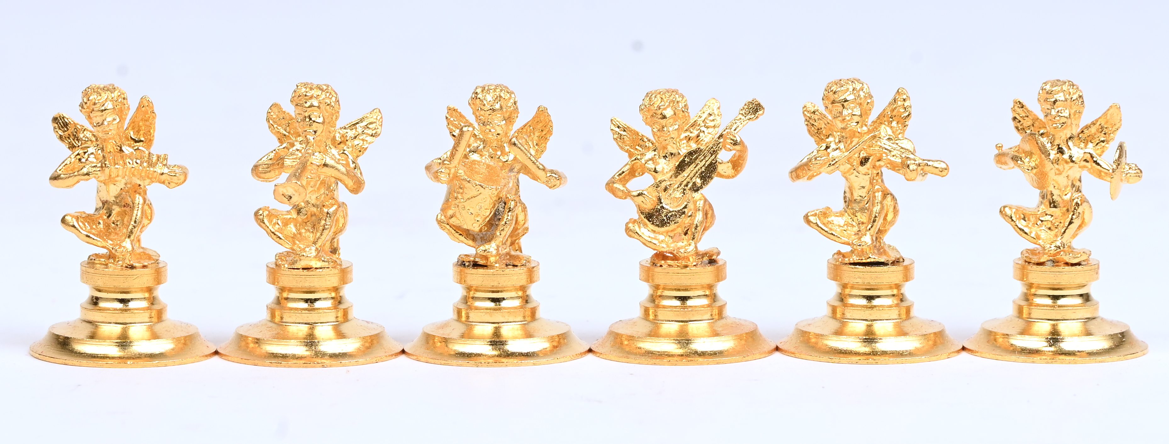 Een set van 6 verguld metalen muzikale engeltjes.