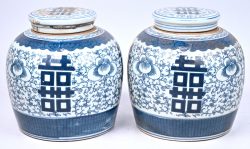 #341Een paar Chinees porseleinen gemberpotten.