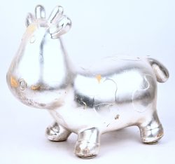 A silver-plated bronze cow. -