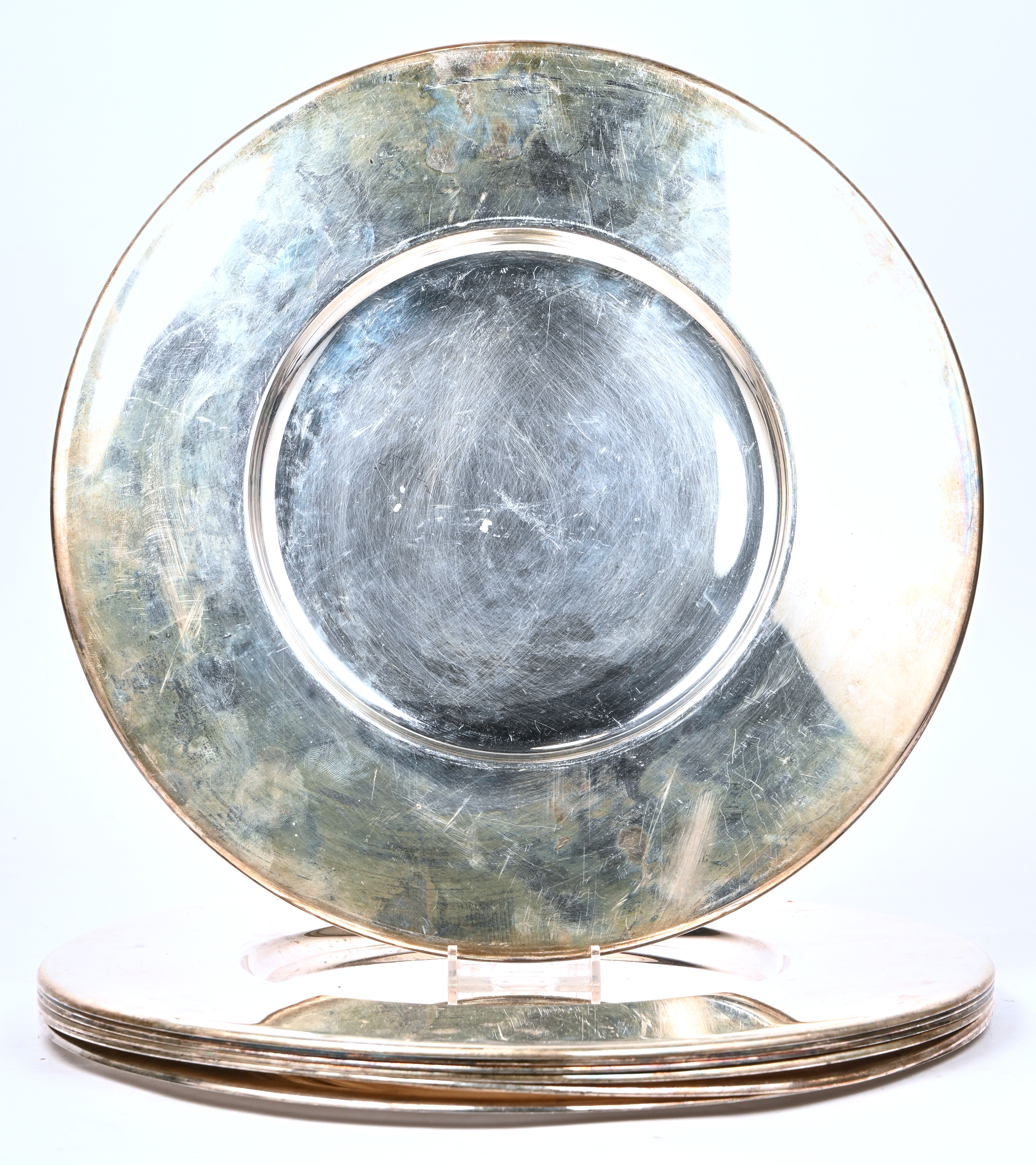 A set of 7 silver-plated metal side plates, marked. -