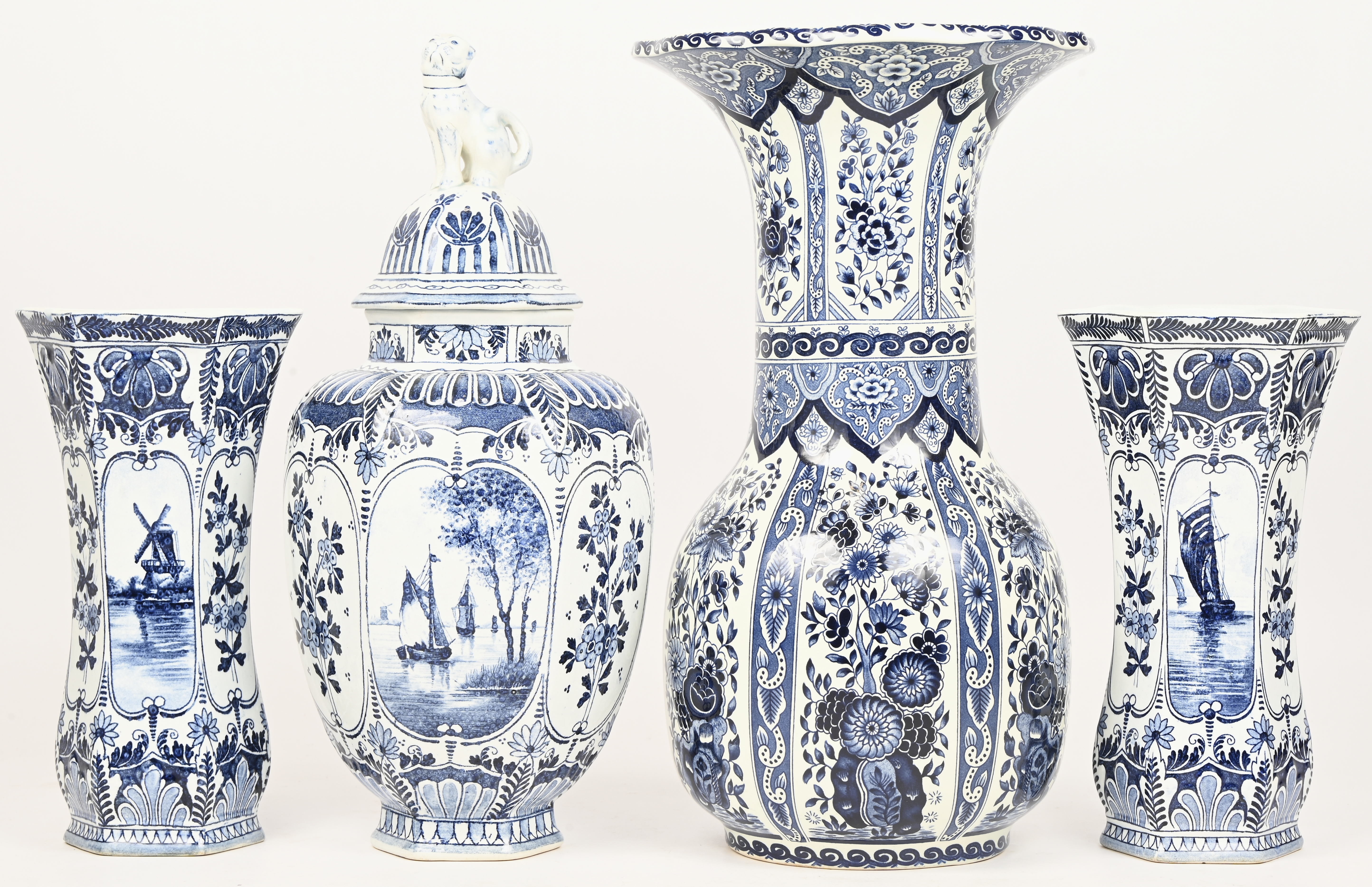 Een lot van zes vazen in Delfts blauw aardewerk.