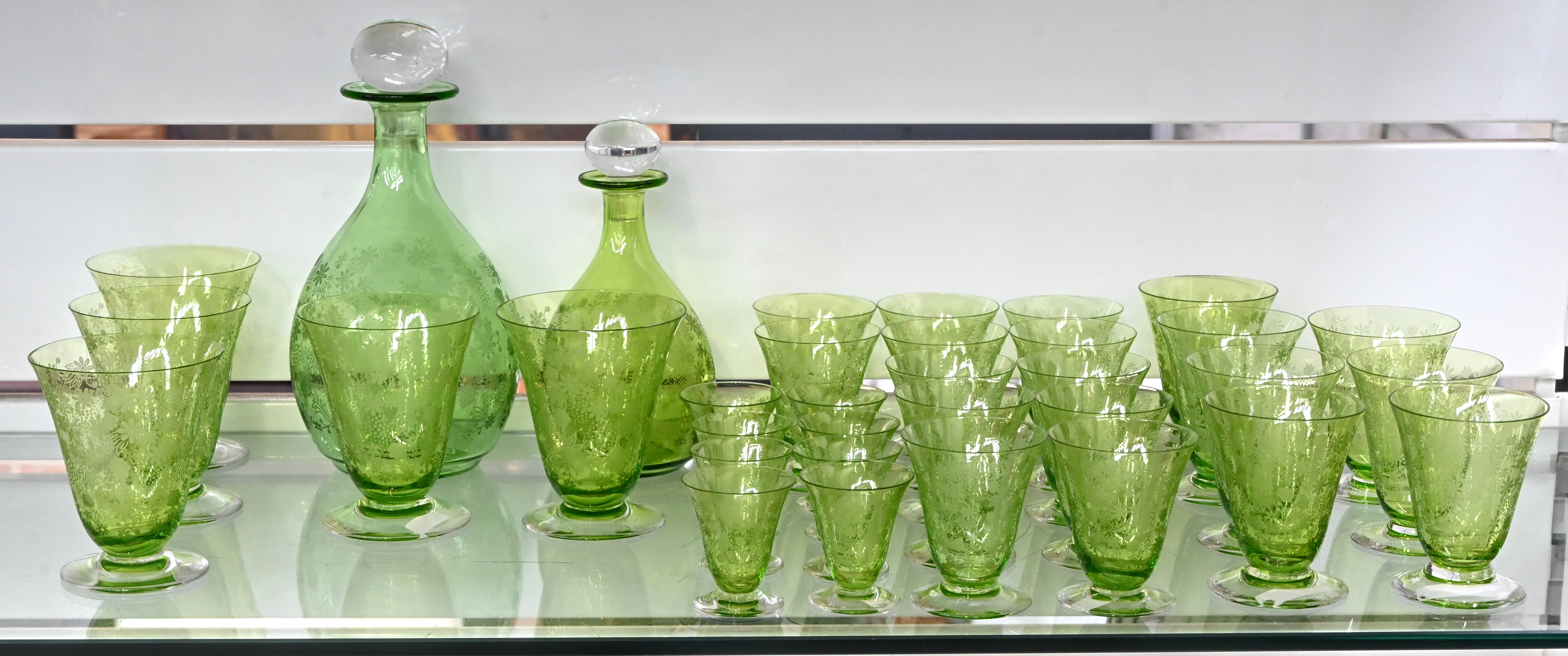 A glass pitcher, decorated with wild ducks and the monogram; J.V.No longer availableOnline onlyActive bid: 15.00 €Dim. Hoogte 19, Ø 12 cmEstimate: € 15 / 20
