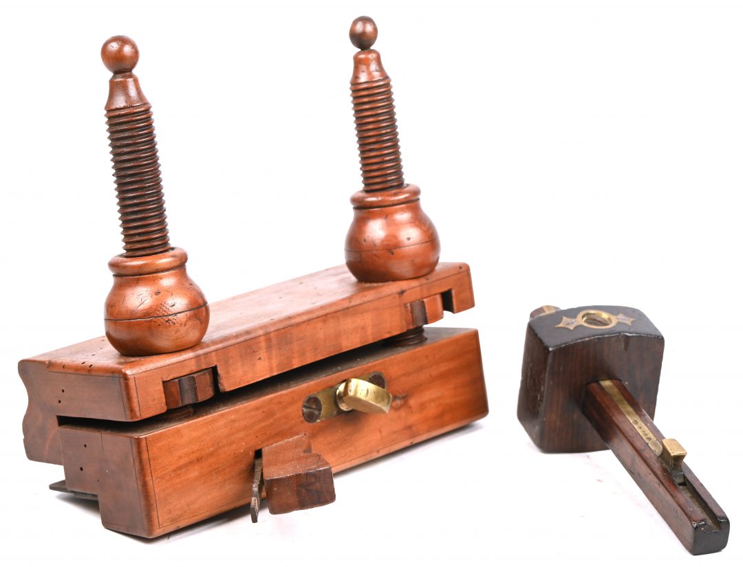 A set of two woodworking tools, a mortise gauge (Gent), and a plow plane (type of plane).