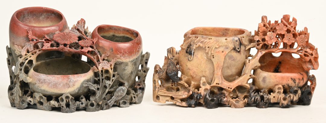 #143Drie zilveren objecten van Oosterse oorsprong. Het dekselpotje heeft binnenin een witte residulaag. Brutogewicht; 315 gram.