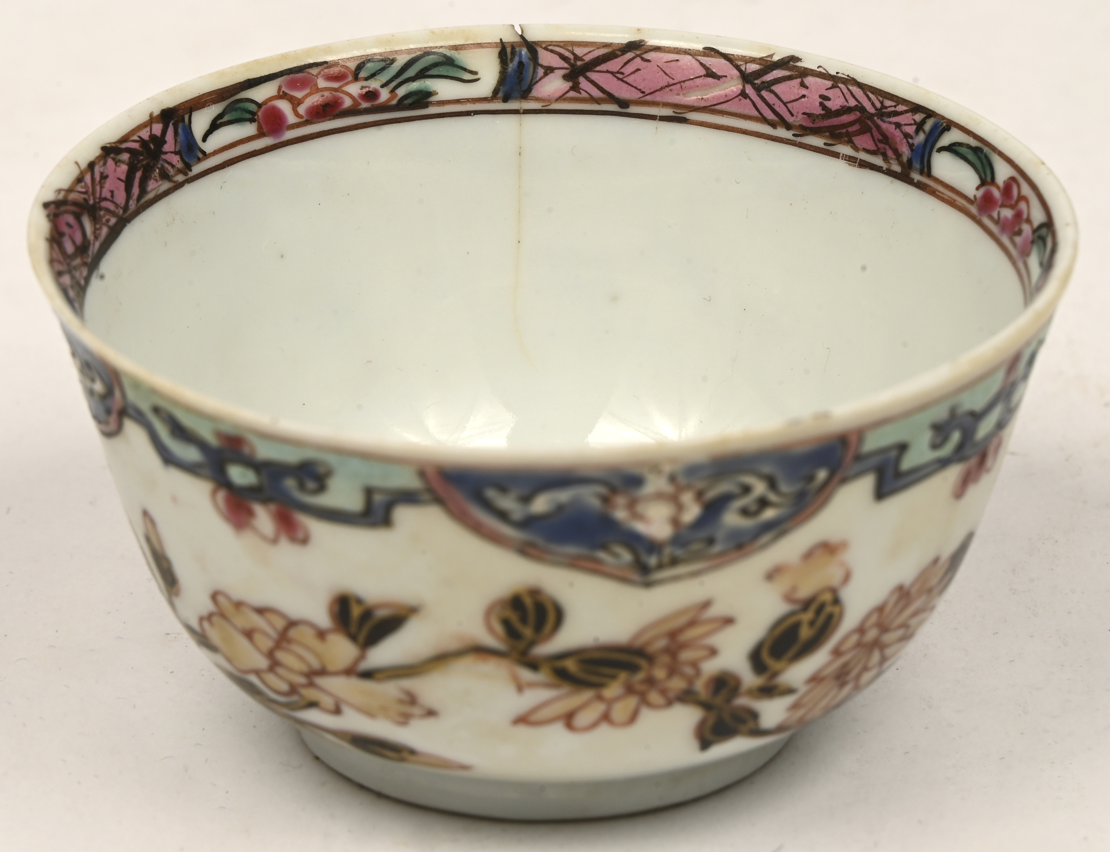 Een schaaltje en een terrine van meerkleurig Chinees aardewerk. Met een decor van personages aan het hof. Niet gemerkt.