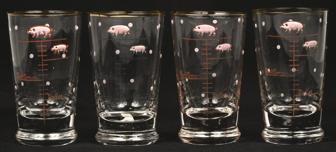 Een lot van 4 oude glazen stolpen, toegevoegd een hoedendoos met houten stolpvoeten.