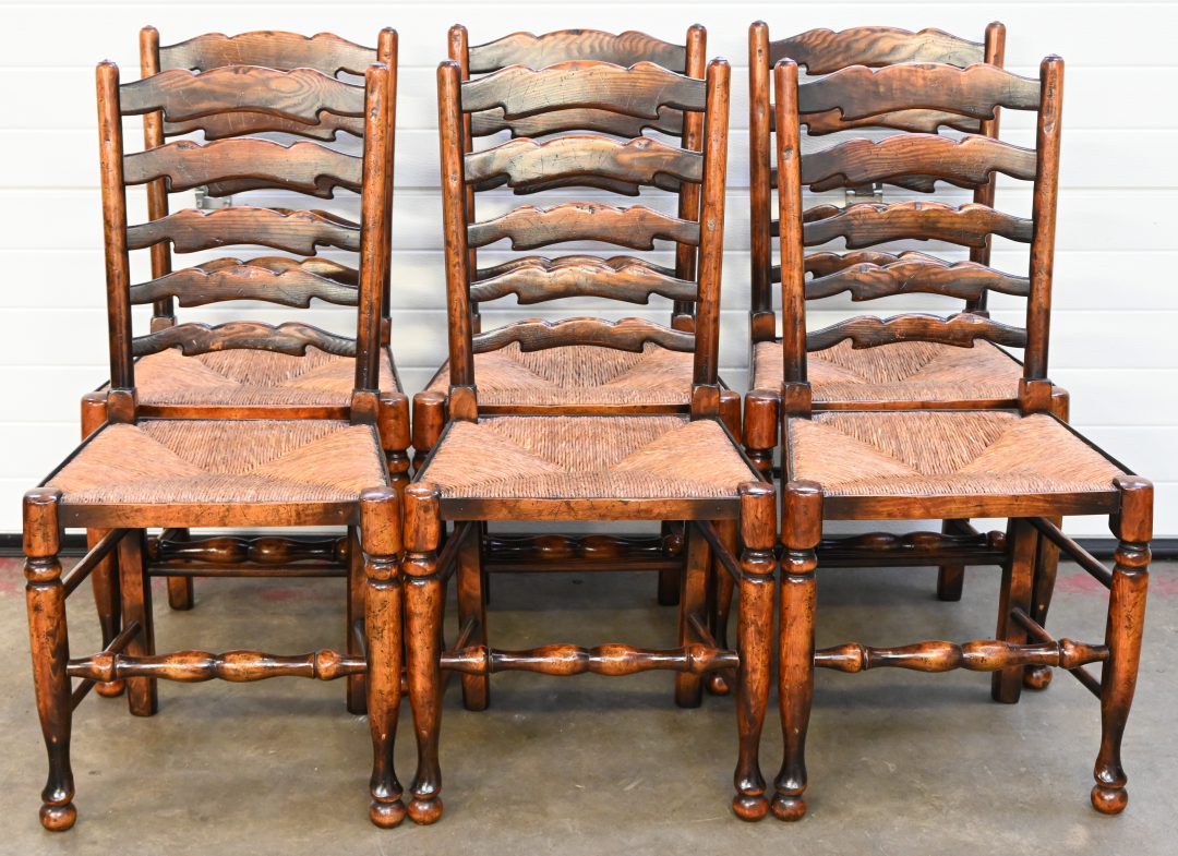 A set of four dining chairs on wheels, with armrests. Upholstered in ecru-colored faux leather.No longer availableDim. H 81, B 58, D 58 cmEstimate: € 60 / 80 -