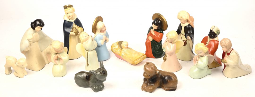 Mère à l'enfant. Une statue en plâtre patiné vert. Signée au dos.No longer availableDim. h: 65 cmEstimate: € 80 / 120 -