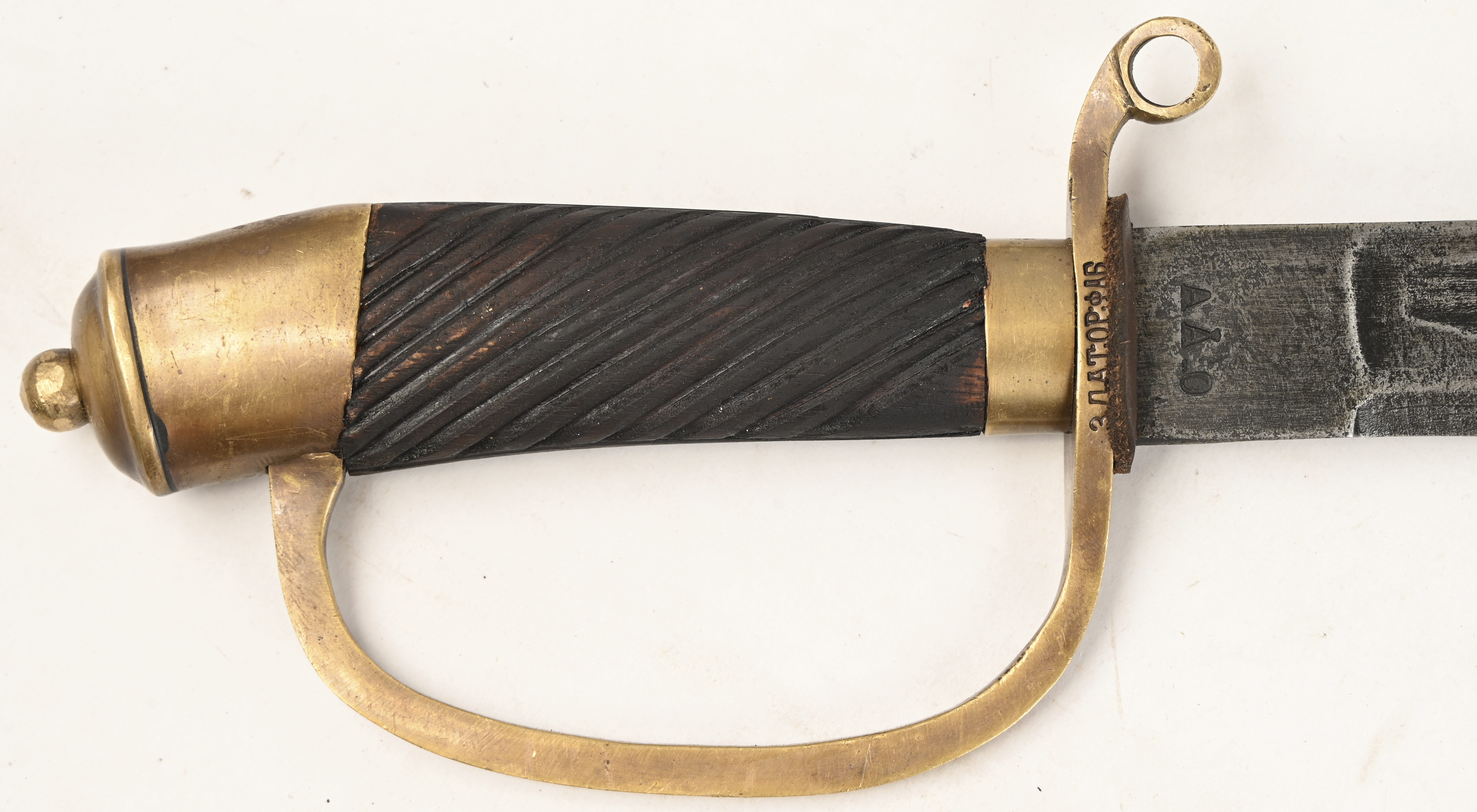 A Shashka replica, Cossack saber produced at the Zlatoust Arms Factory. Russia. Stamped on the blade with a hammer and sickle and the year 1934. On the pommel CCCP and a winged hammer and sickle. Attached to the scabbard is a bayonet, Mosin Nagant M91/30 type.