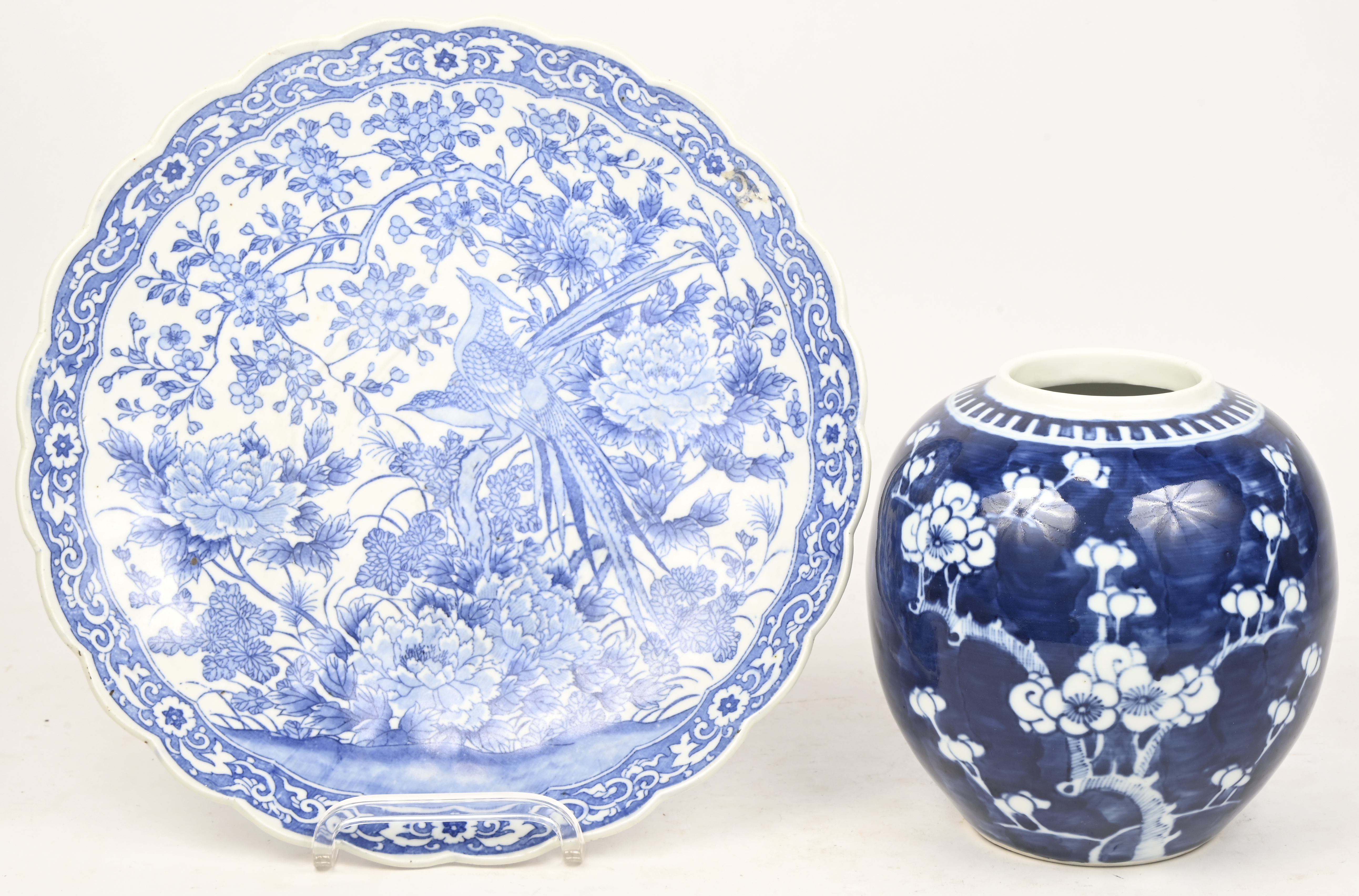 Een Chinees porseleinen diepe schotel, toegevoegd 2 kleine bordjes.
