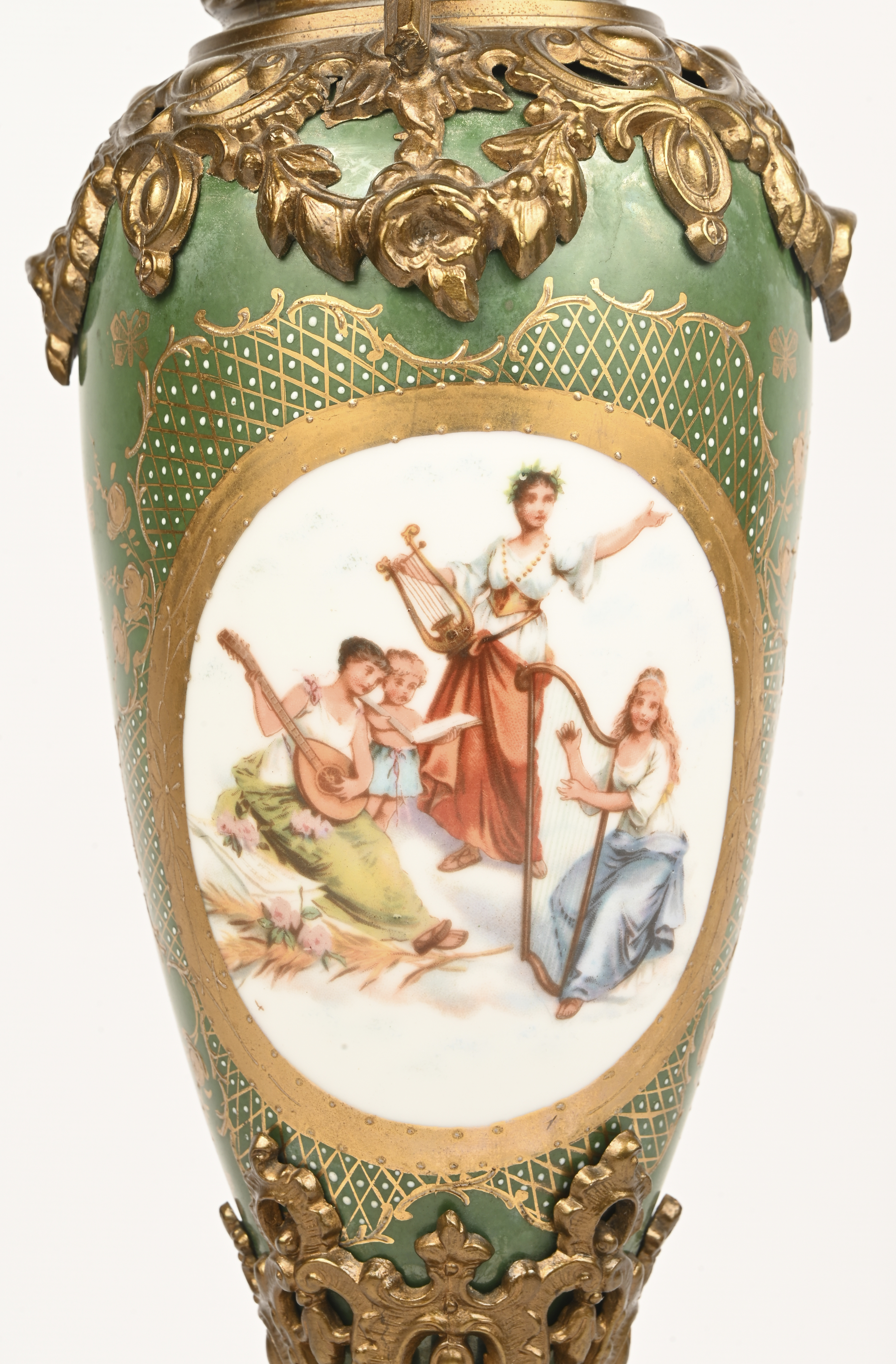 "Don Quixote de la Mancha on Rocinante." Polychrome porcelain sculpture. Marked at the bottom S. Marchi, Italy. Tip of the spear is missing. -