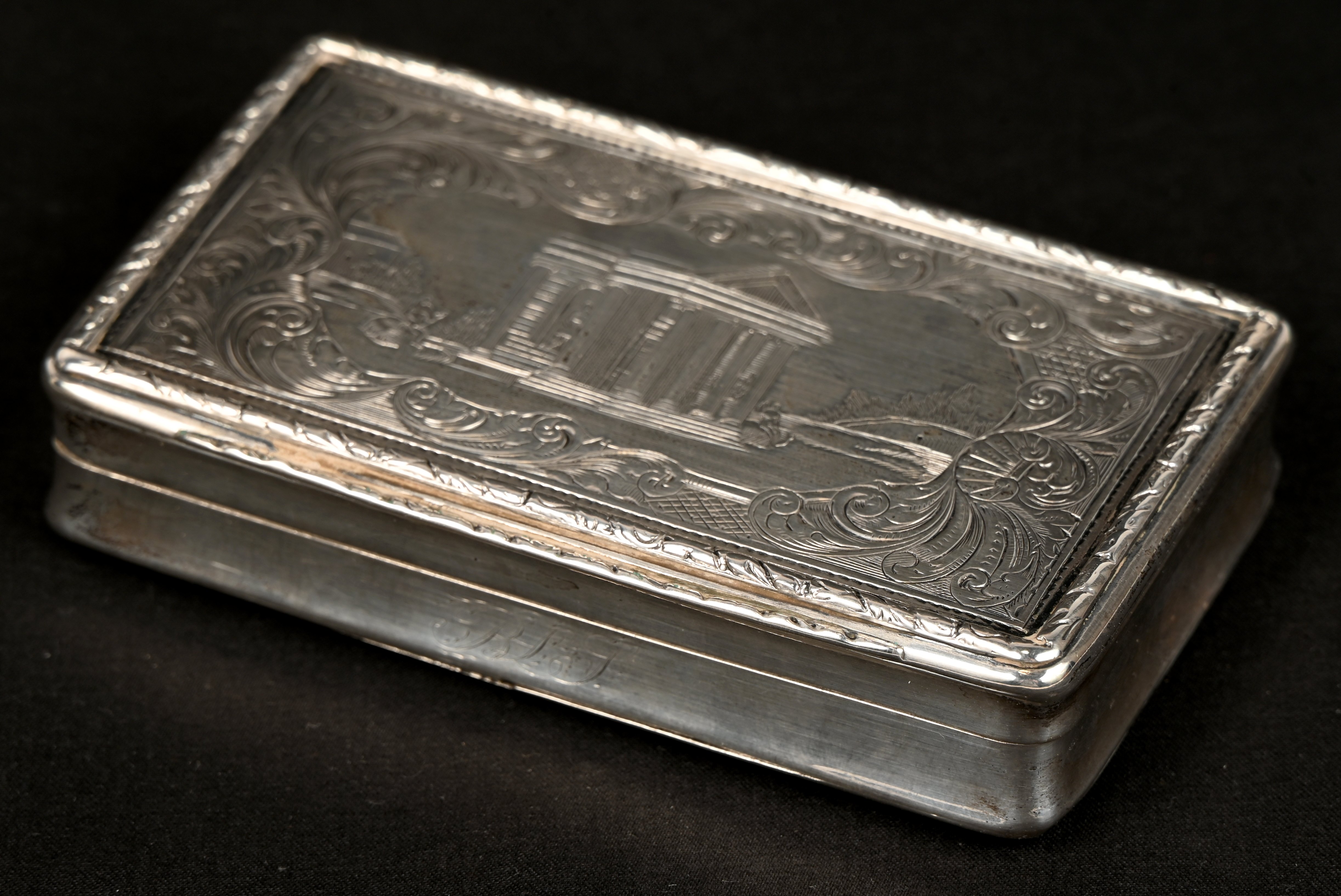 #37Een zilveren sigarettendoosje, Duitse keuren: 800, maan + kroon. Gedecoreerd met initialen LD. 105 gram.