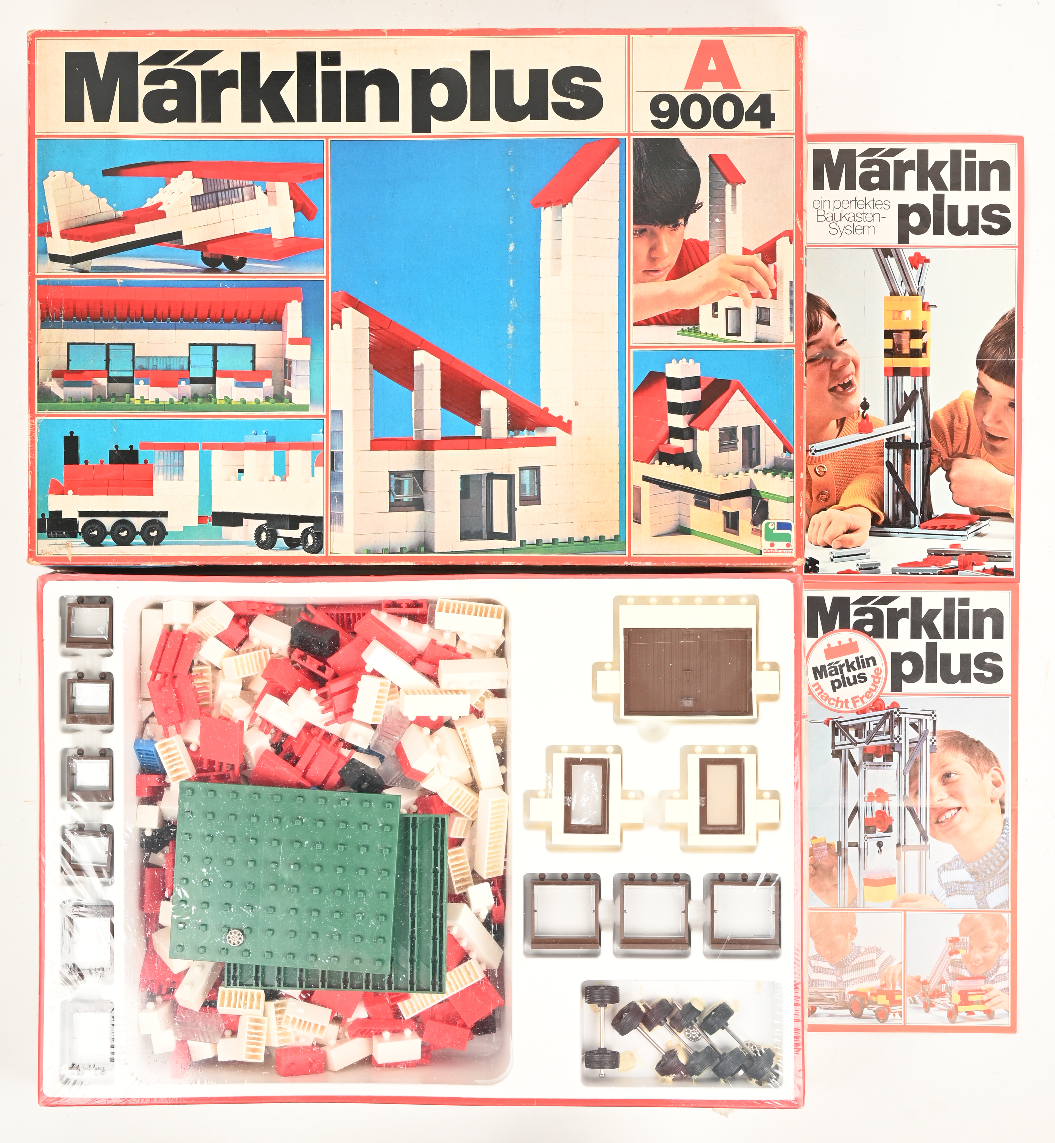 A toy construction kit marked Märklin Plus A 9004, unopened in original box.