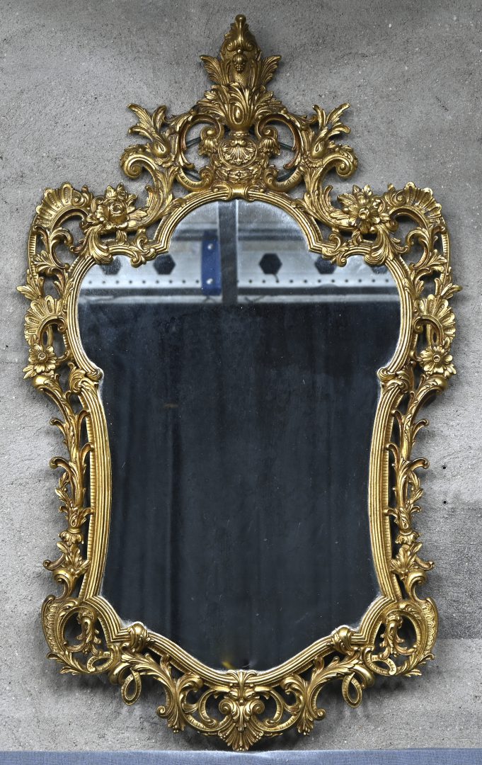 A mirror with a brass frame in the Louis XV style. -