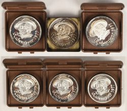 "Rubens Year Antwerp 1977." Six solid silver medals, 925/1000, each weighing 25 g. Medal strike. In individual cases. -