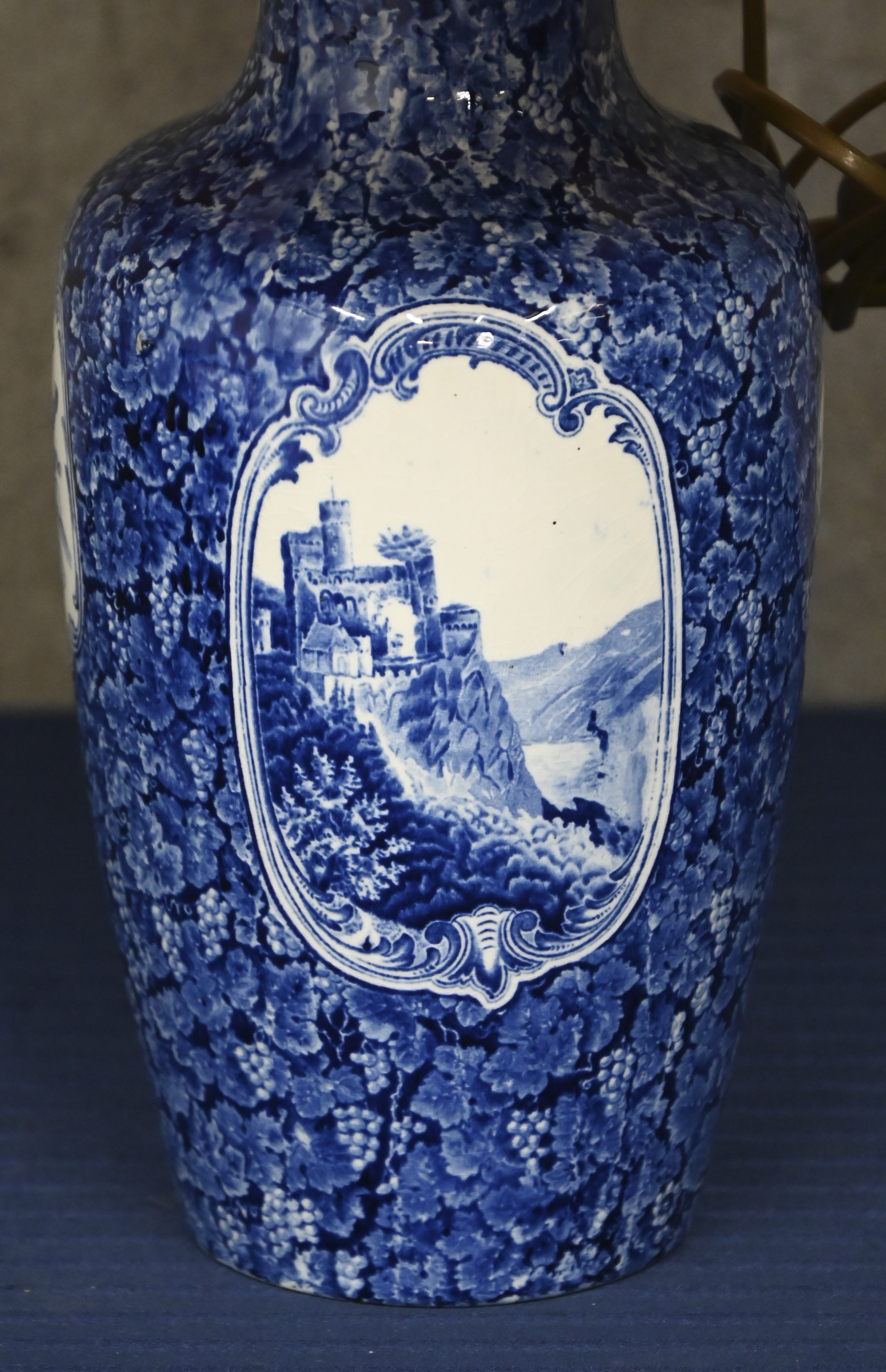 A vintage ceramic lamp base with floral motifs. West Germany. -