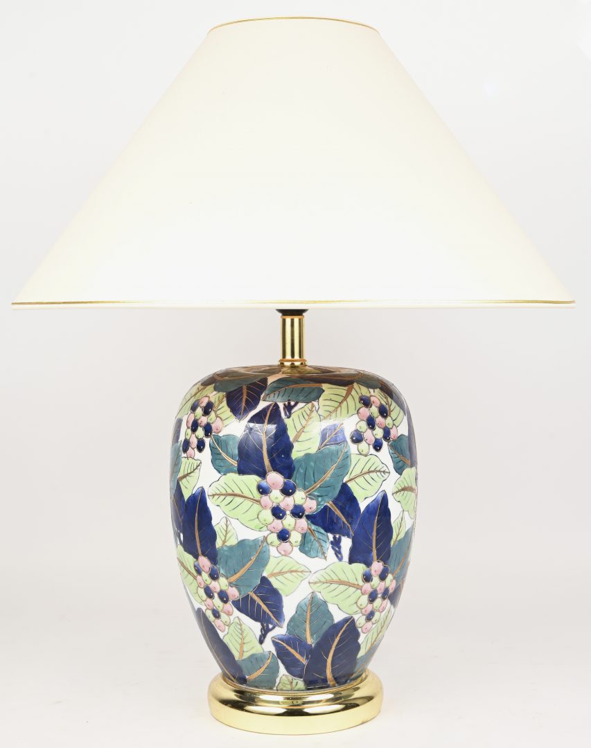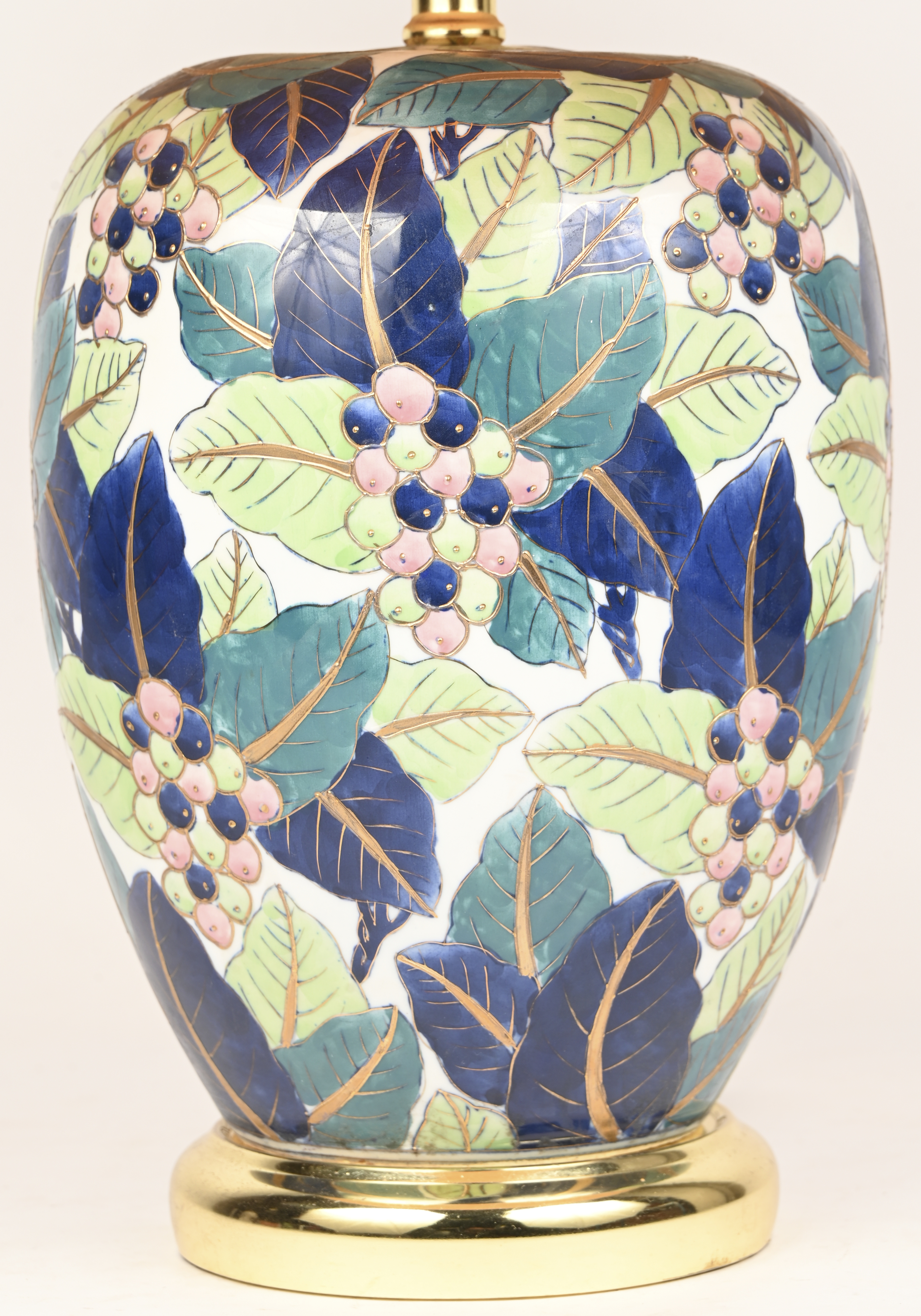 Handbeschilderde vaas in faience met florale motieven, toegevoegd een vaasje met oosterse motieven.