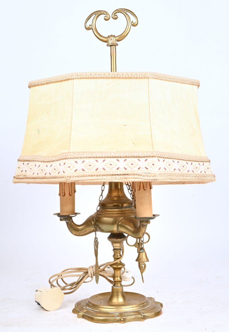 A table lamp with a Lessing oil lamp base.