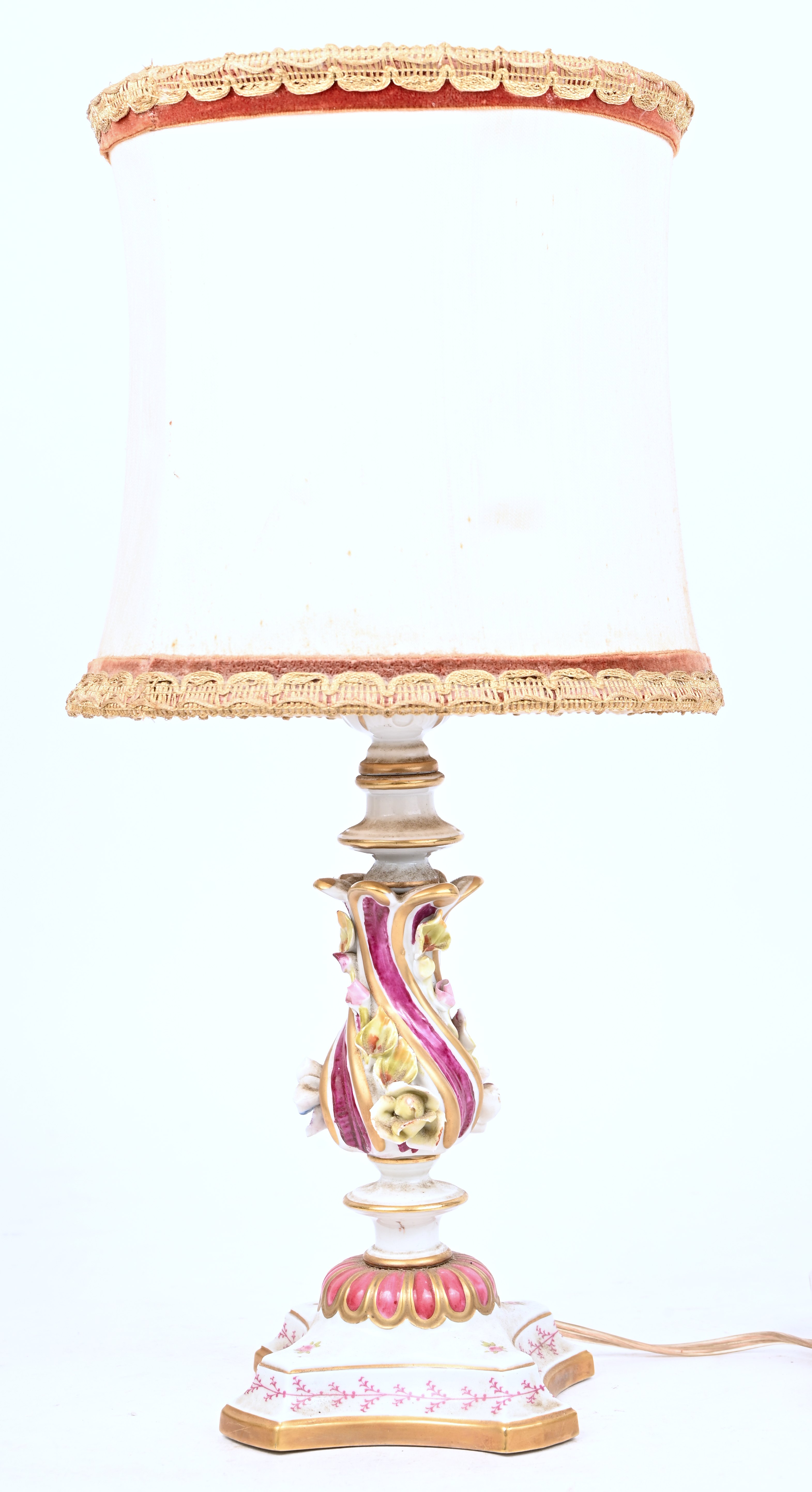 Een tafellampje van meerkleurig porselein. Gemerkt Capodimonte.
