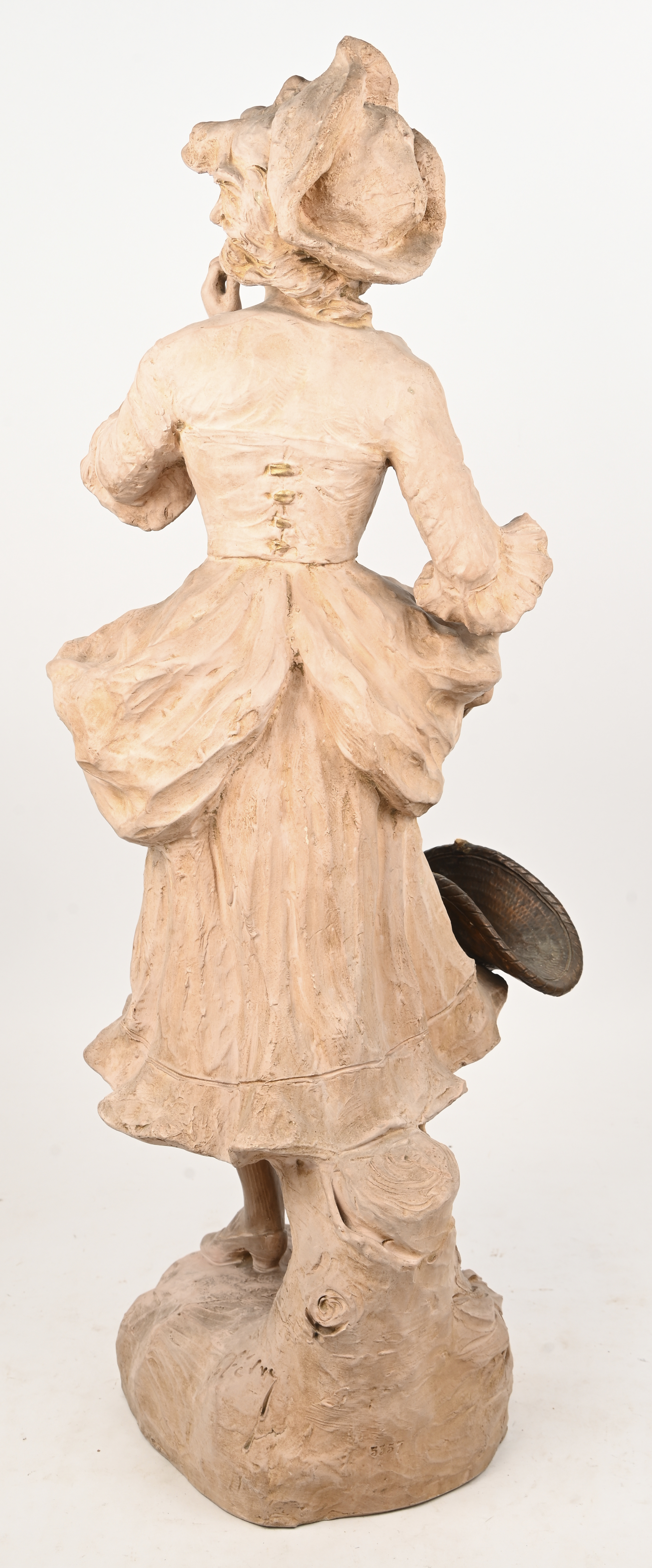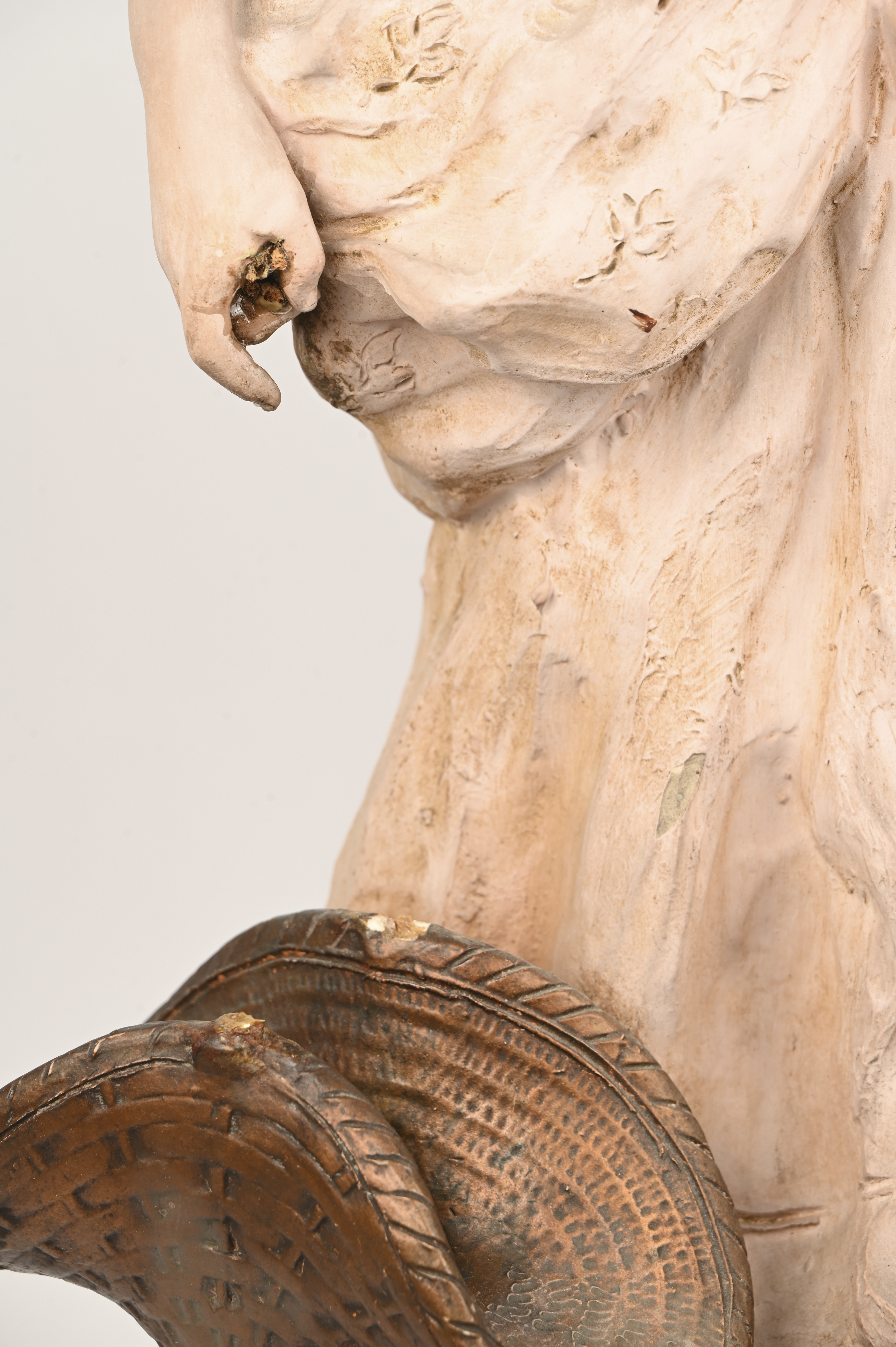 #69Een groot kuisbeeld van gepatineerd plaaster.