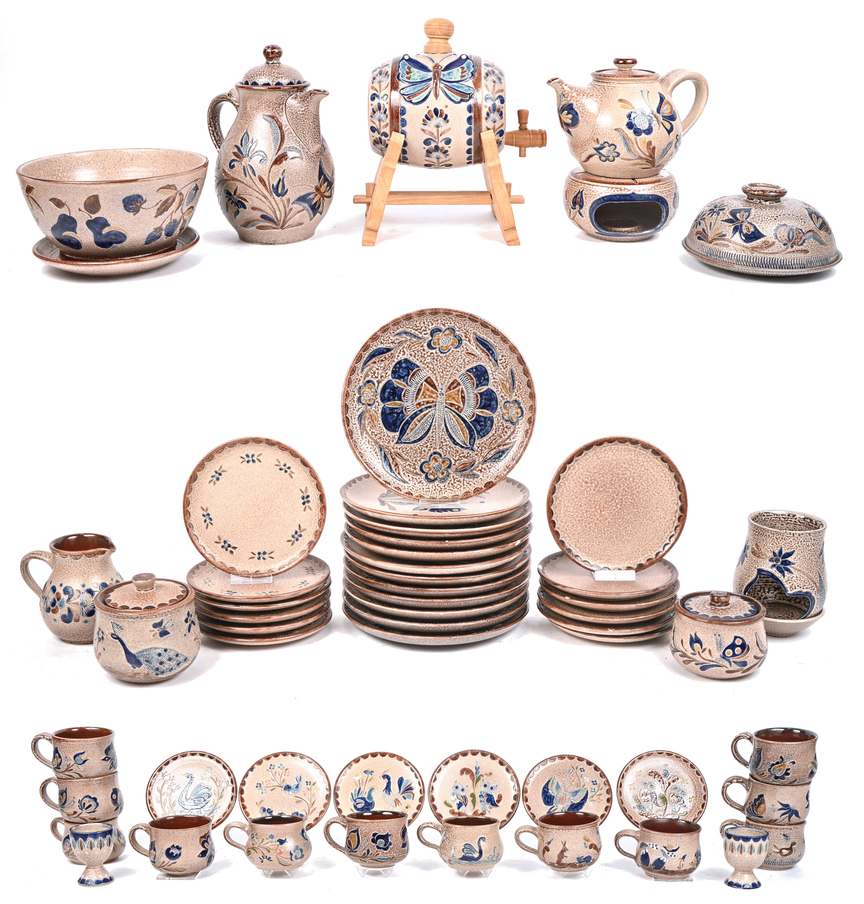 #268Een groot lot bierpullen met deksel van Westerwald aardewerk.