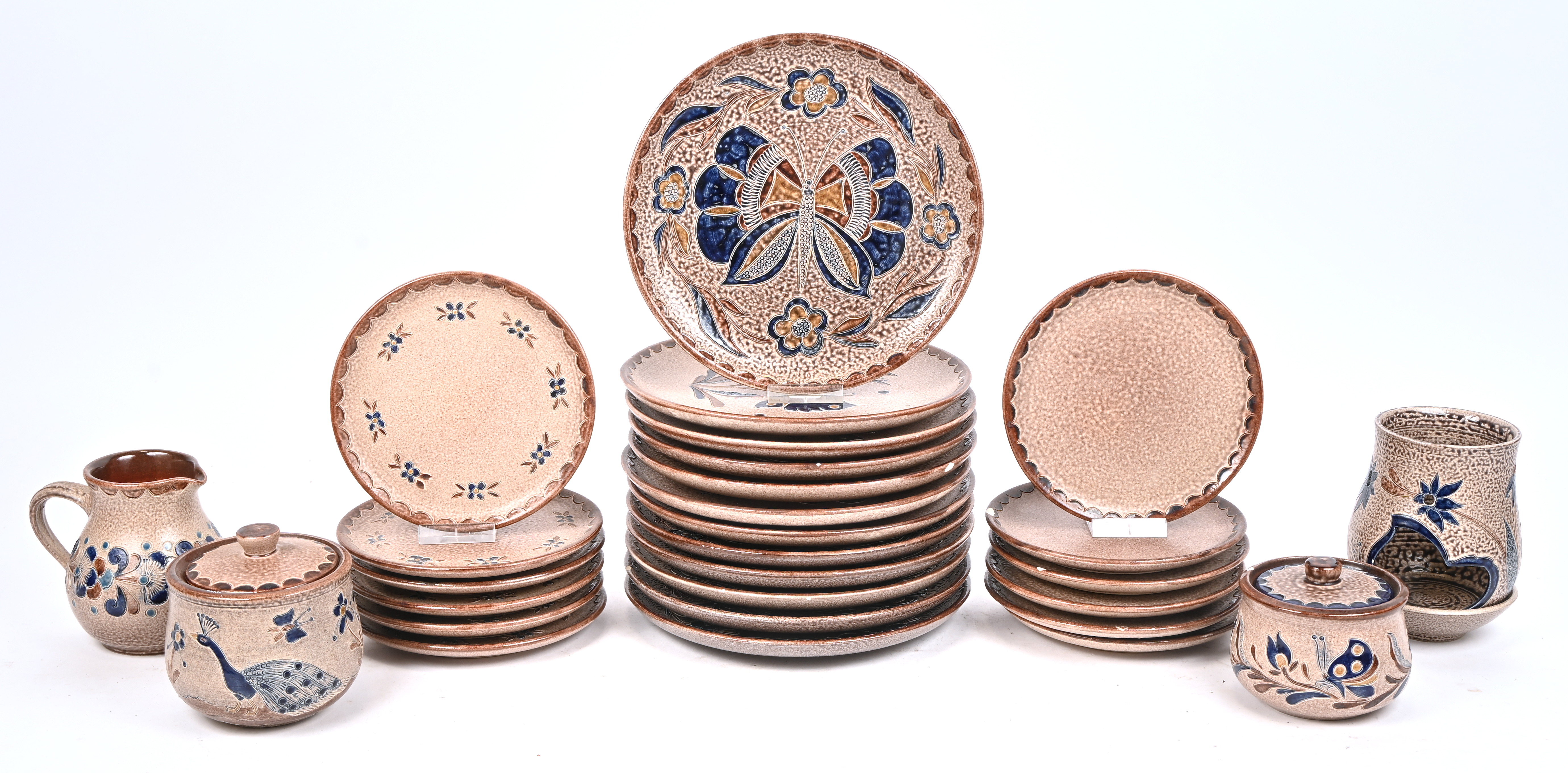 #258Een groot lot bierpullen zonder deksel van Westerwald aardewerk.